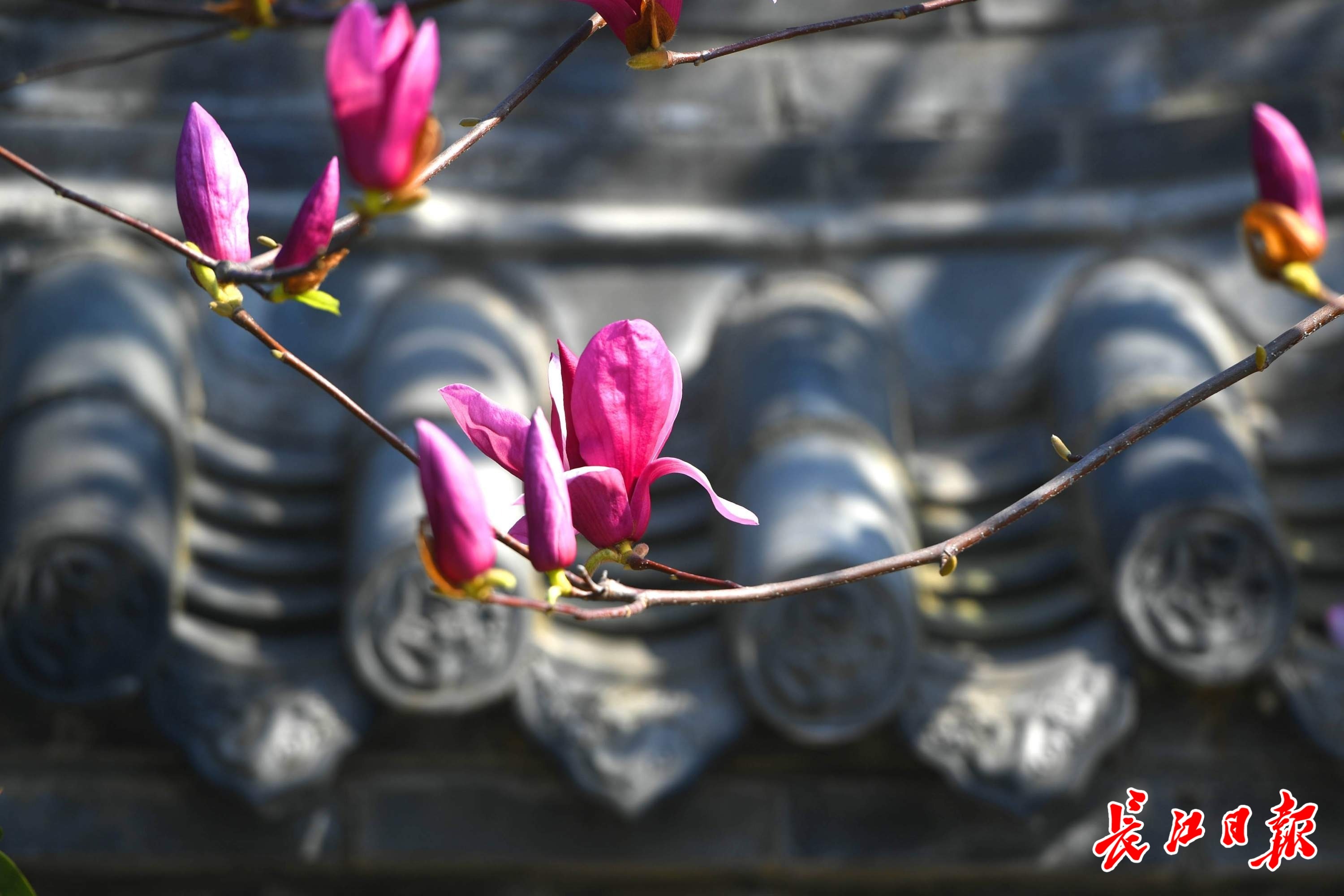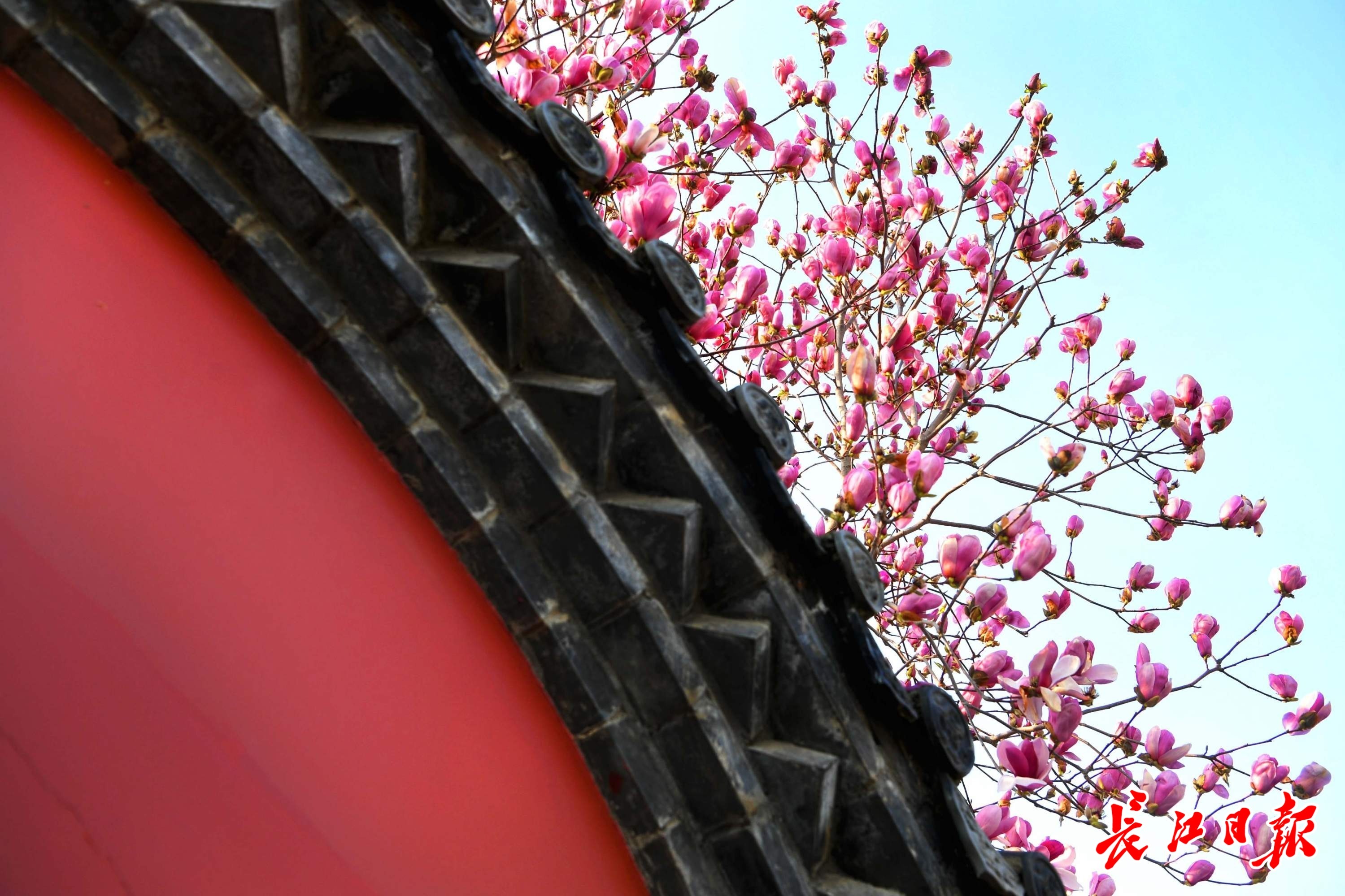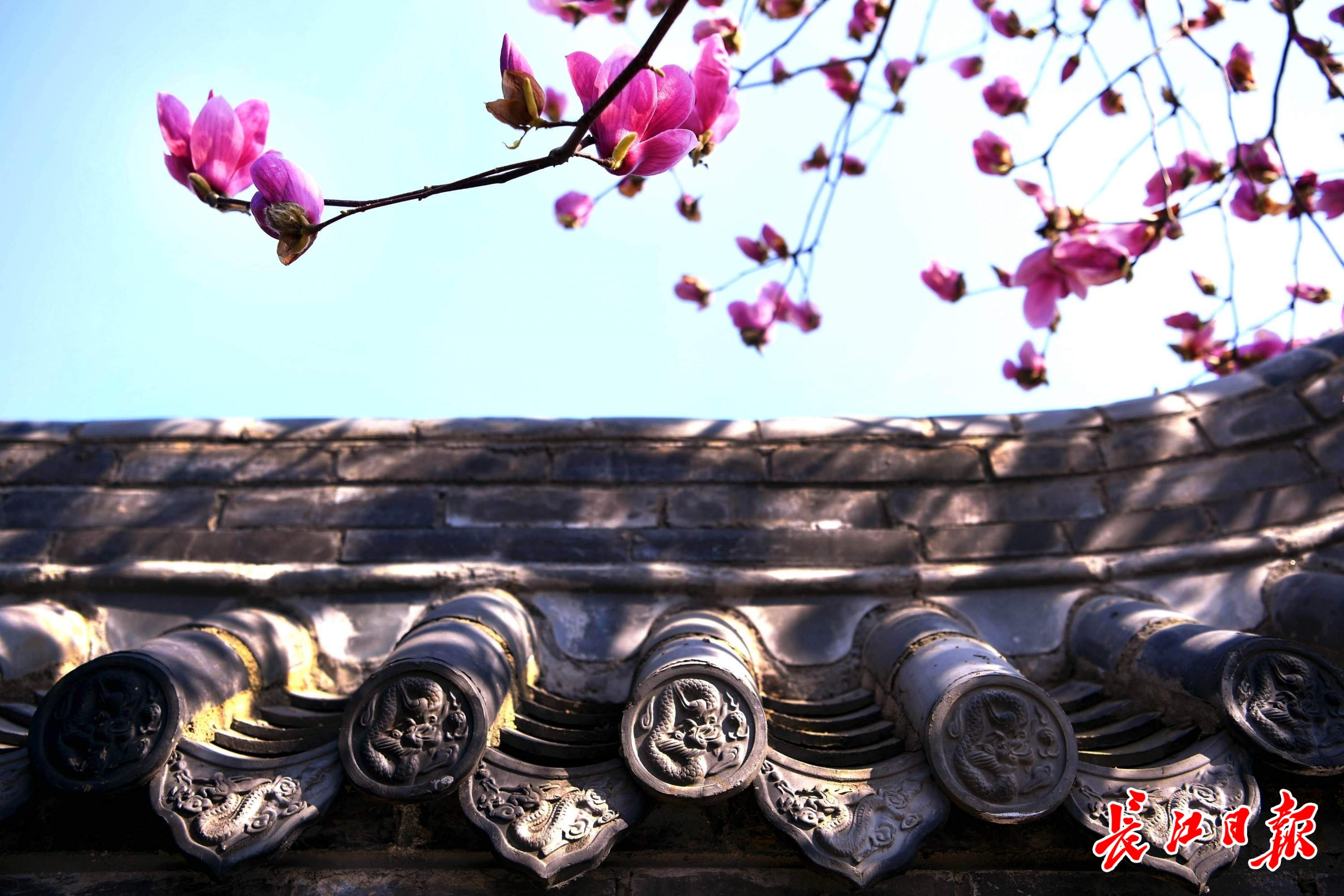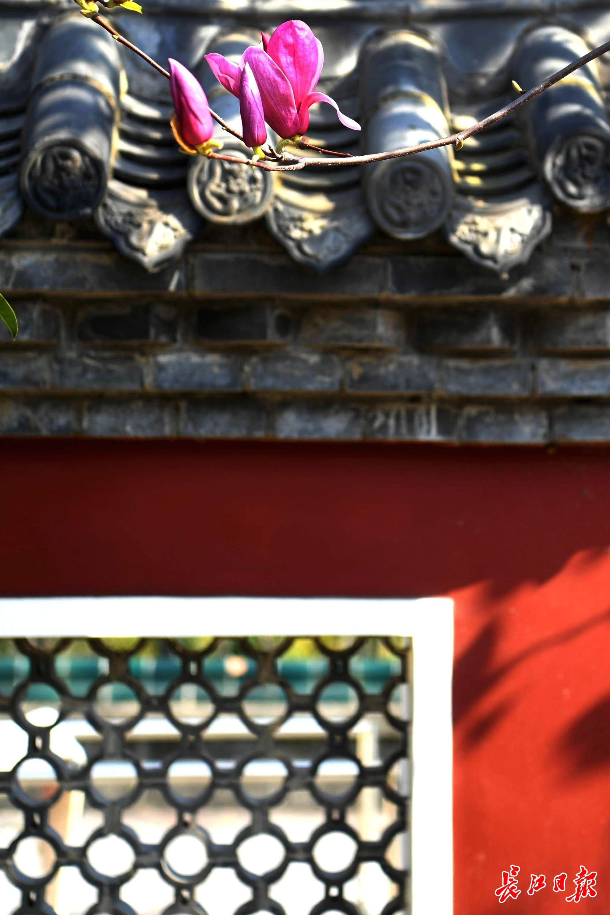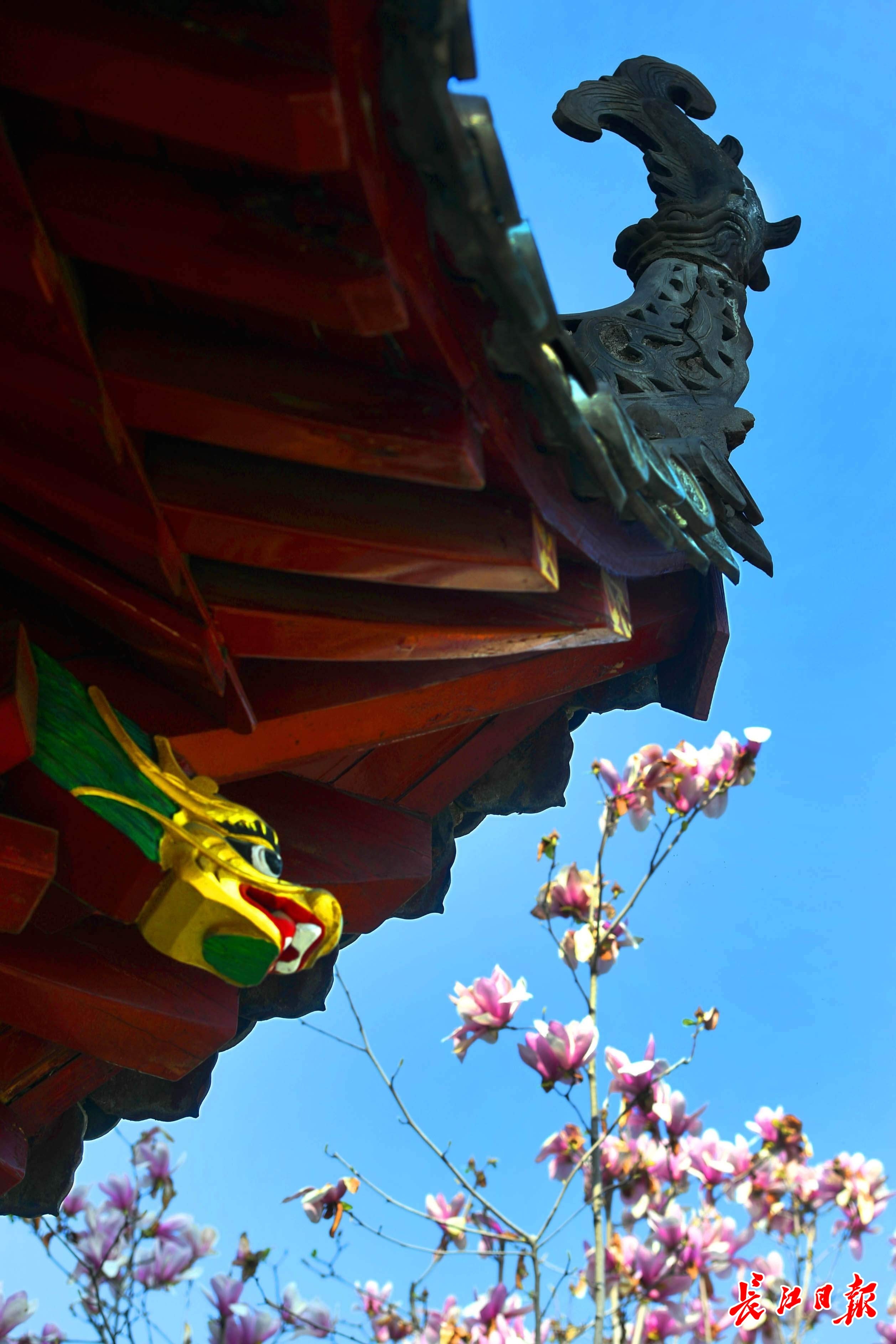 3月13日,长春观盛开的玉兰花与红墙黛瓦、飞檐翘角的古建相映成趣。移步换景,俯仰之间,中式美学韵味尽显。古建的庄重与玉兰的清雅交融,让人于闹市中觅得一方诗意栖居。