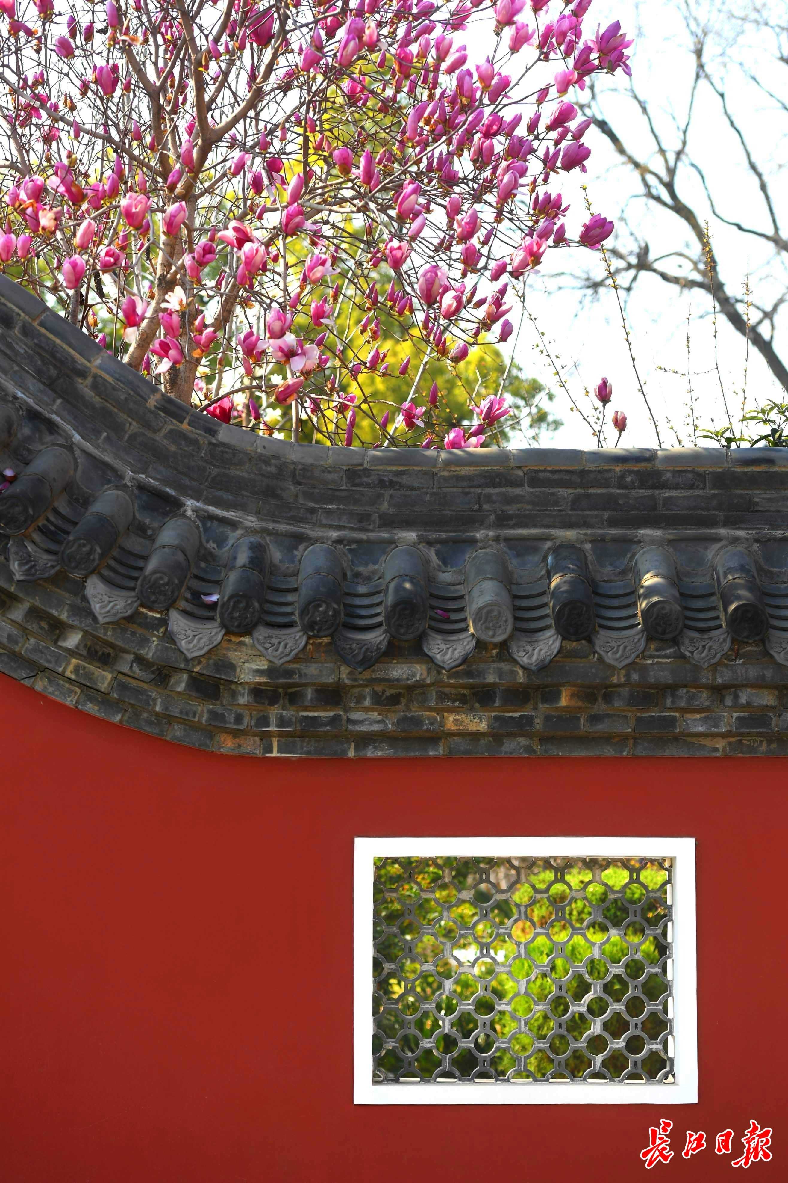 红墙黛瓦映玉兰:长春观的中式美学画卷
