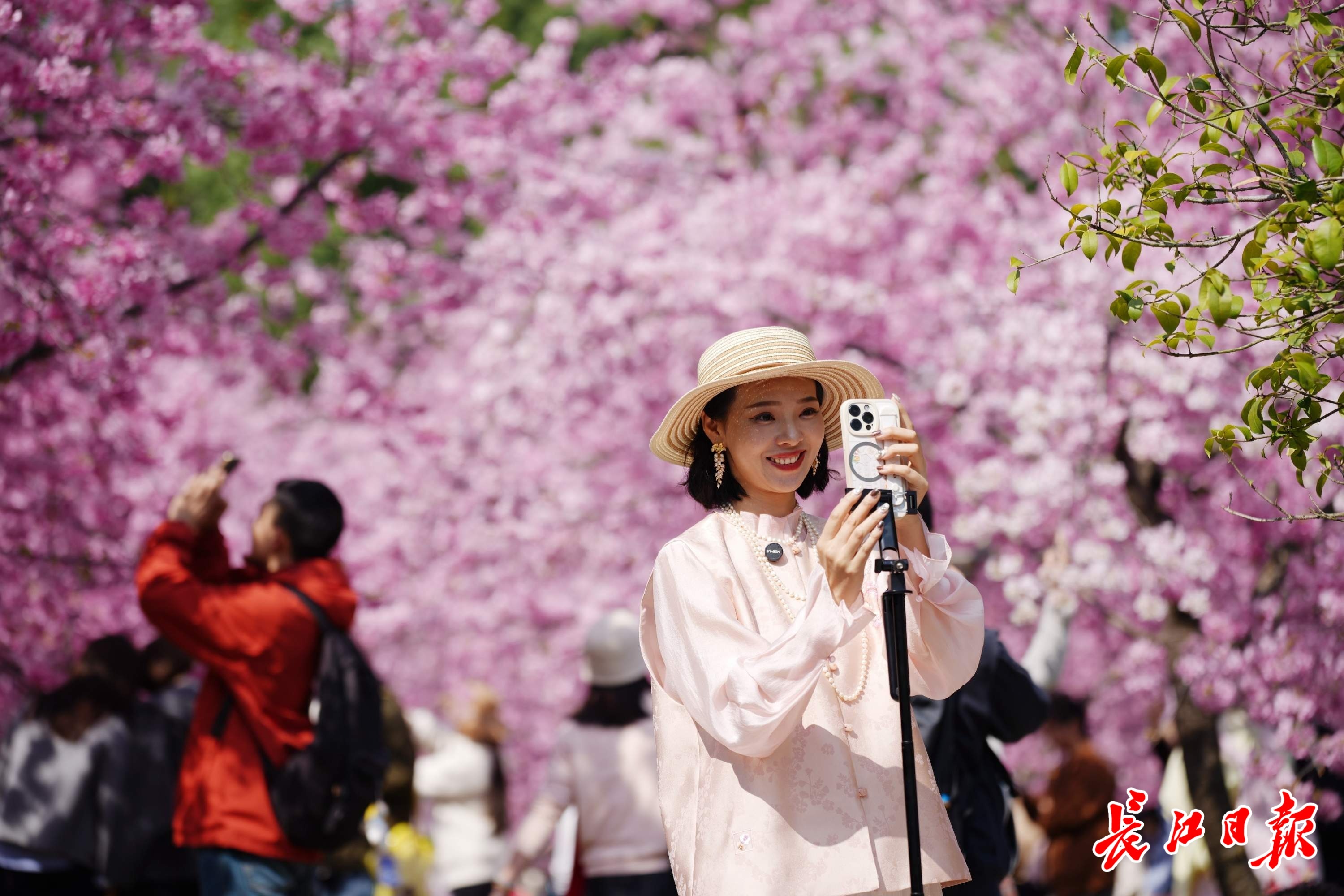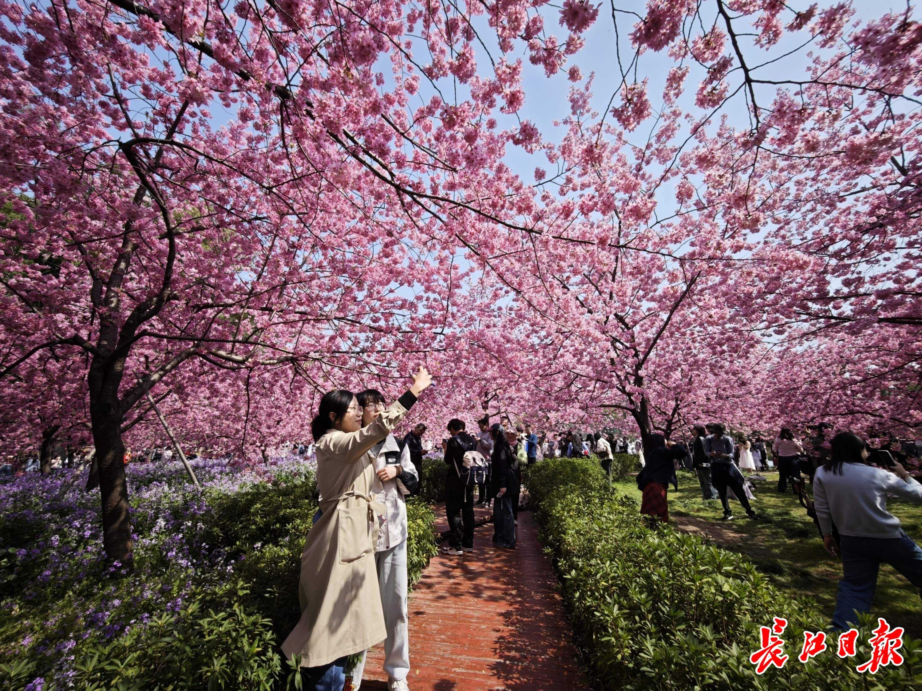 3月14日,天气晴好,最高气温达22℃。武汉东湖樱花园迎来周末客流高峰。园内樱花竞相绽放,春意盎然,吸引全国各地游客前来踏青赏花。游人漫步花海、拍照打卡,尽享春日美景,景区内秩序井然、人气旺盛,处处洋溢着休闲愉悦的假日氛围。