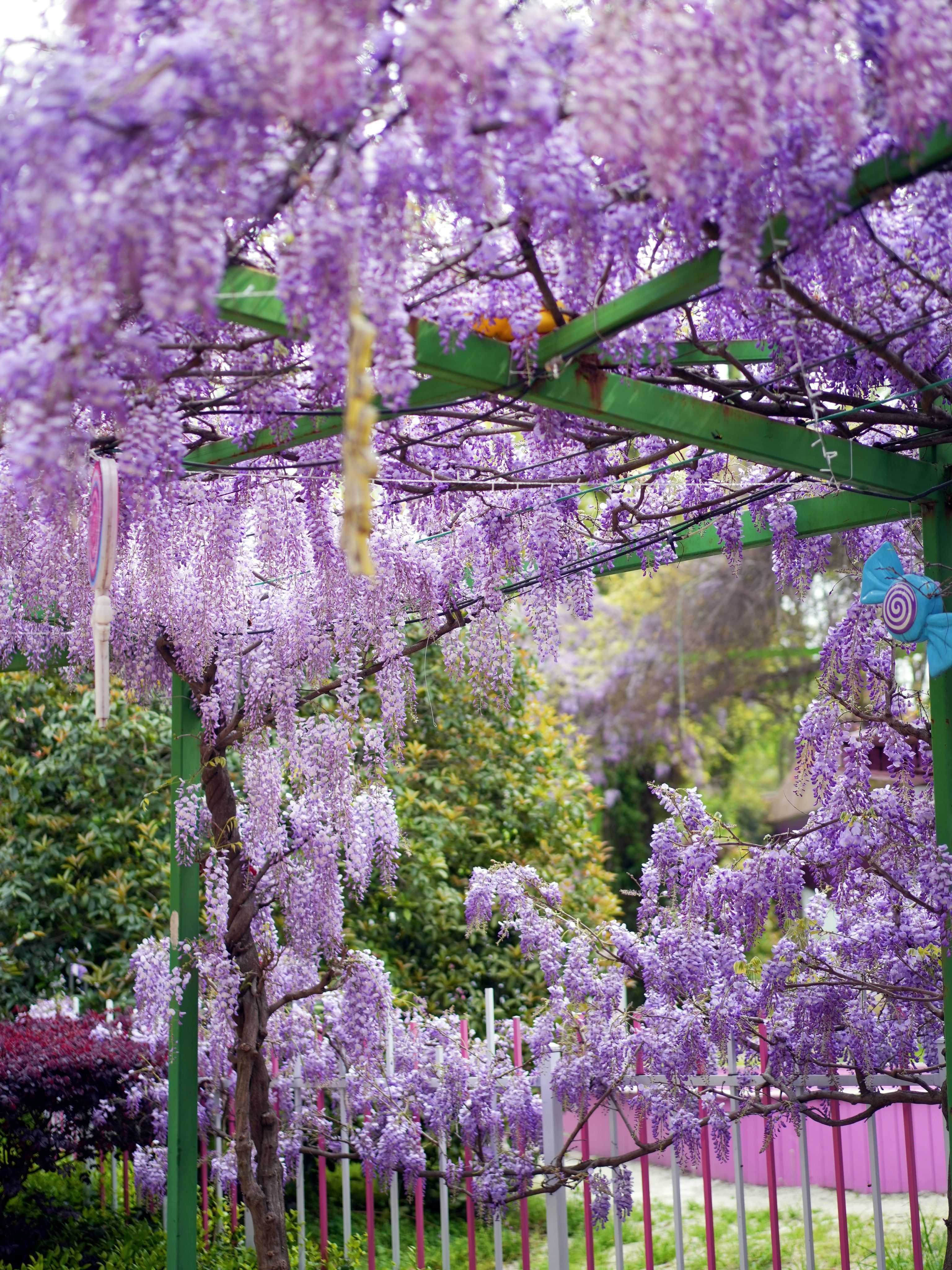 东湖磨山景区欢乐丛林内紫藤花浪漫十足。