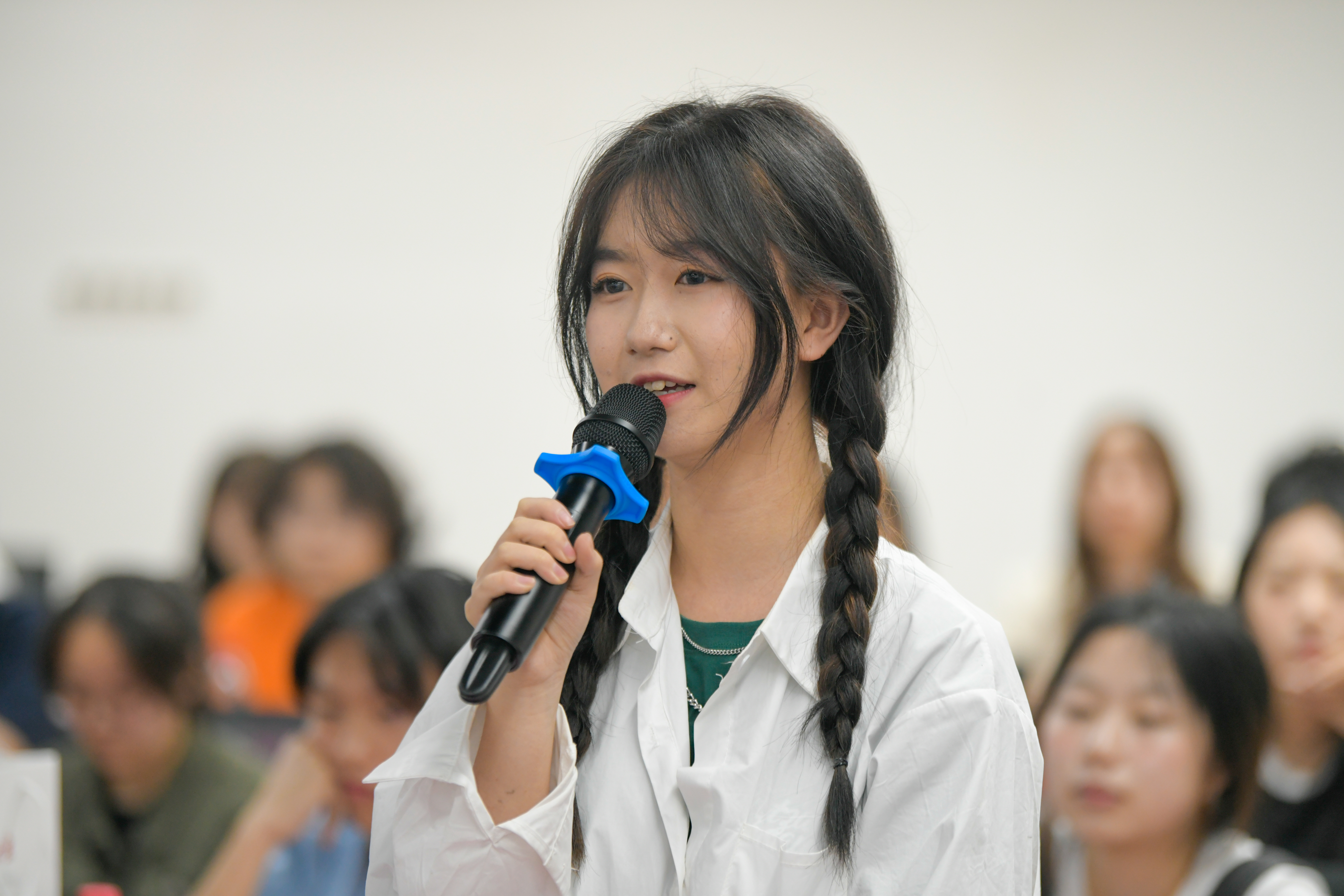 5月12日,武汉理工大学船海与能源动力工程学院学生孔娅婉在座谈会上发言交流。长江网记者吕诗文 摄