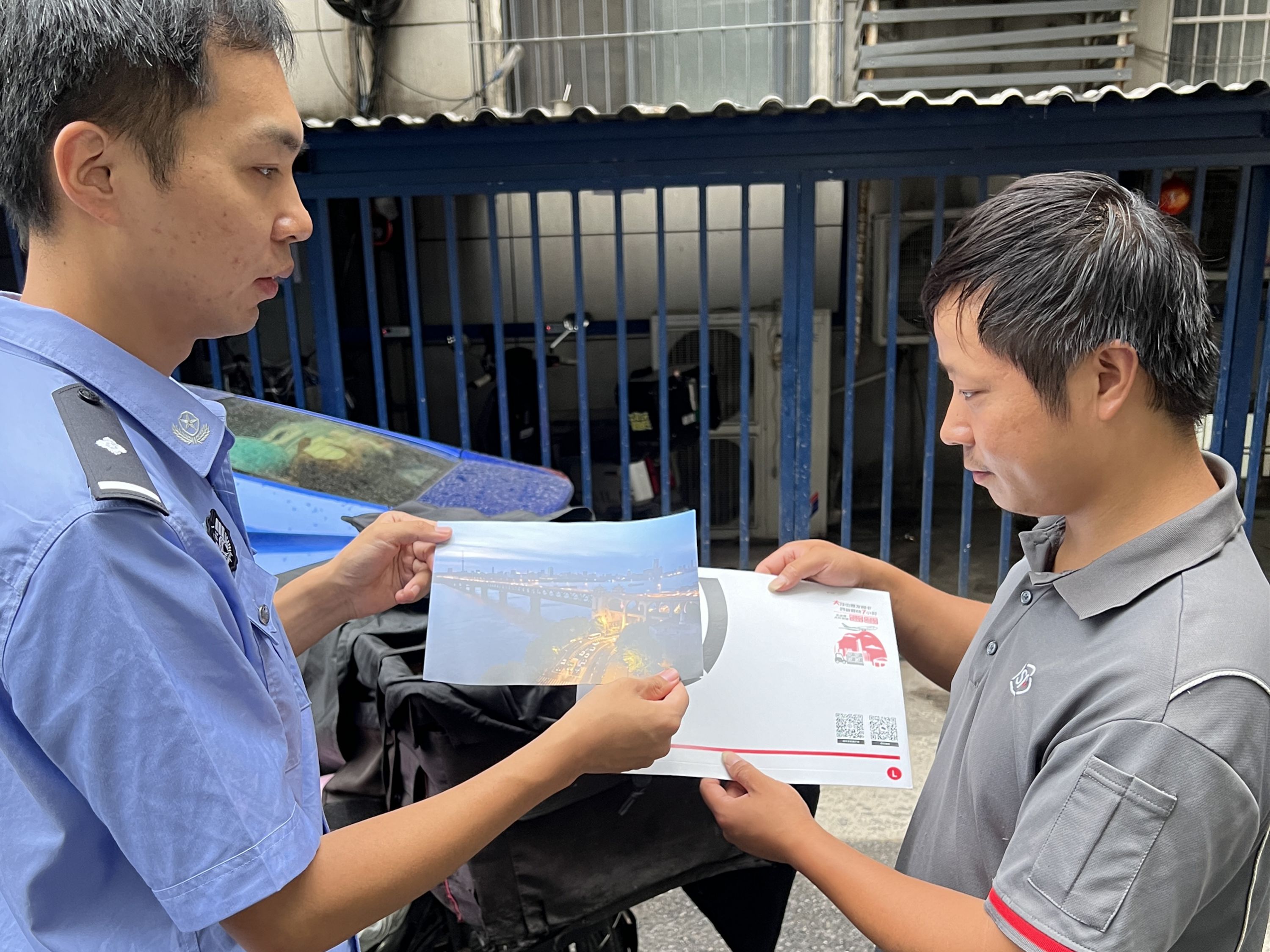 9月12日,得知老人的遗憾后,民警将长江日报记者拍摄的大桥照片寄给陈有银老人。