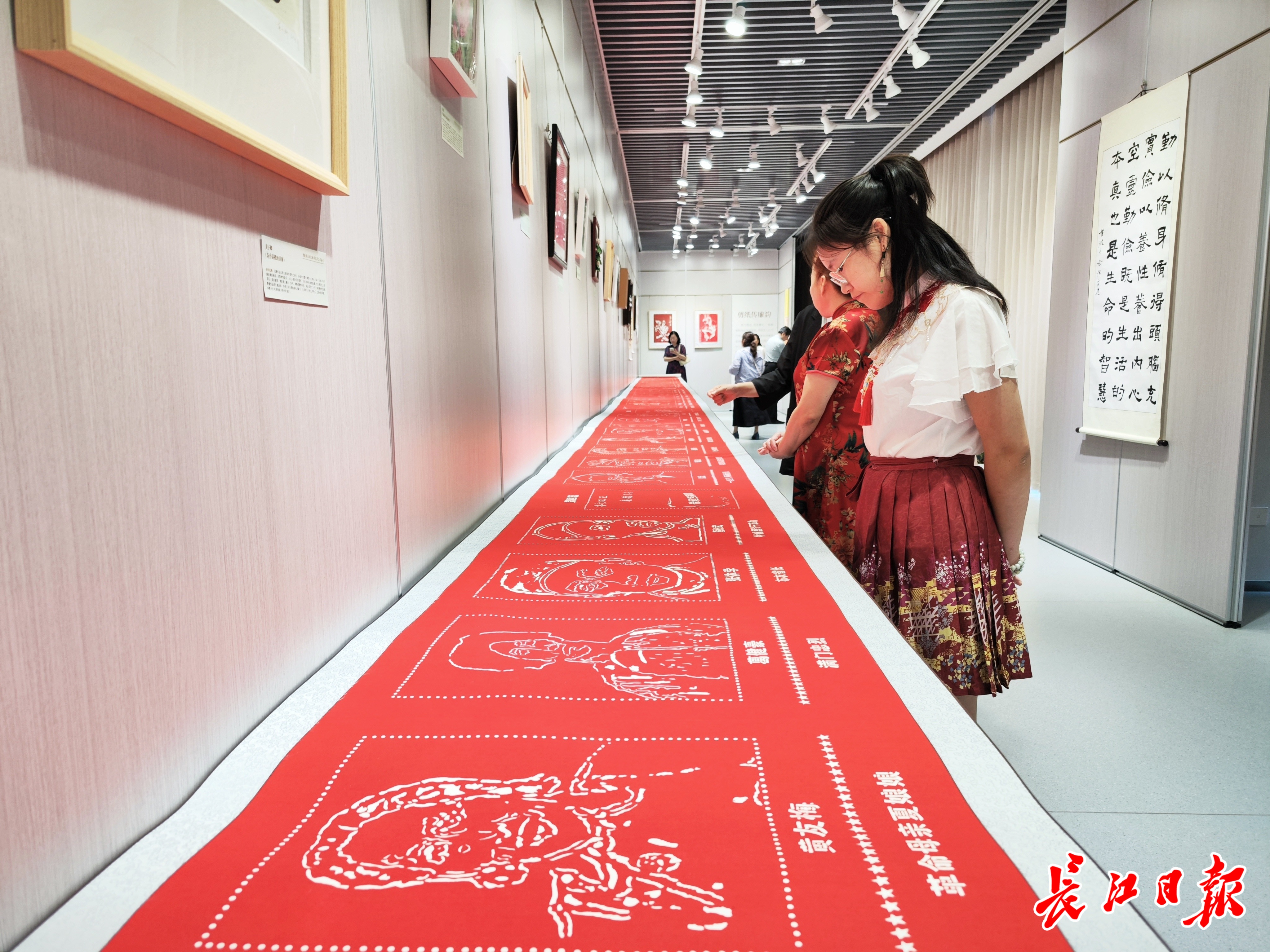 59岁的女儿以丝带绣就《瑞鹤呈祥》,针脚细密,仙鹤立体生动;90岁的母亲执剪创作《鹊莲》,红纸翻飞,莲开鹊鸣……6月11日,“清廉家风润江城”优秀非遗手工作品展览在中共武汉市委党校开展,两代人的匠心之作同台展出,引得不少人围观点赞。
