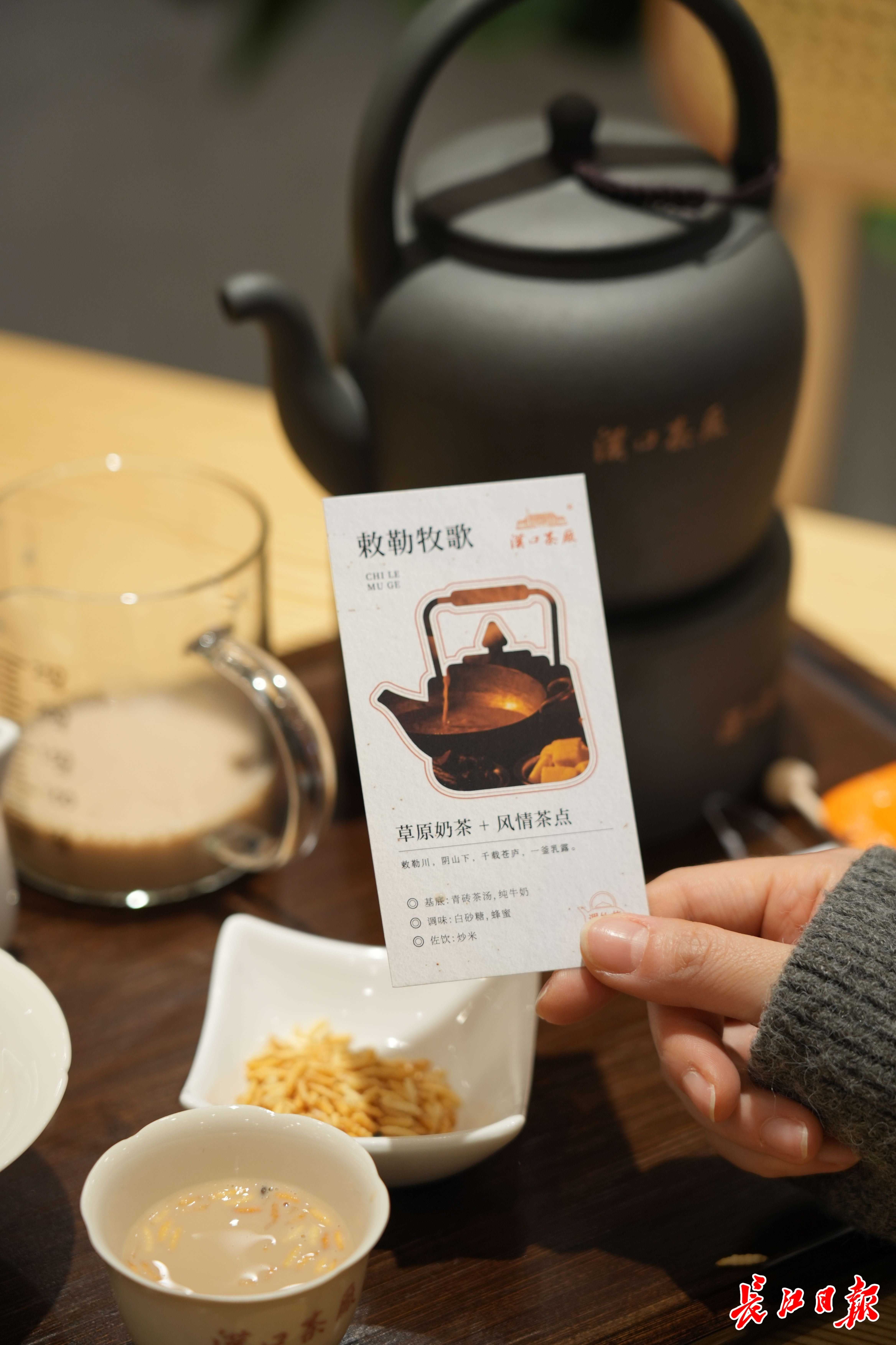 茶饮师卢浩介绍,店内产品会随季节焕新,最新推出的“赤勒牧歌”套餐就源自游牧民族咸奶茶的灵感,游客还能自制奶茶,并加入炒米,风味独具特色。更让年轻人觉得有趣的是店内的茶叶盲盒区,一句“各种贵款茶叶礼盒拆了瞎装,拆到顶流款,您就闷声发大财吧!”的趣味标语,让这里成为互动体验的热门打卡点。不少年轻游客一试手气,在未知的惊喜中感受茶文化的新鲜玩法。