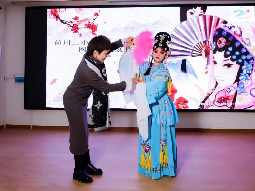 取而代之的,是旋律更明快、节奏更清晰、更贴近口语的“小调”。“小调好唱一点,基本上就是‘报字’,有一点点转弯抹角也没问题,孩子们更容易‘上口’。”何菲说,在保持楚剧韵味的前提下进行适度创新,目的是“让孩子们更好地理解和参与戏曲文化”。