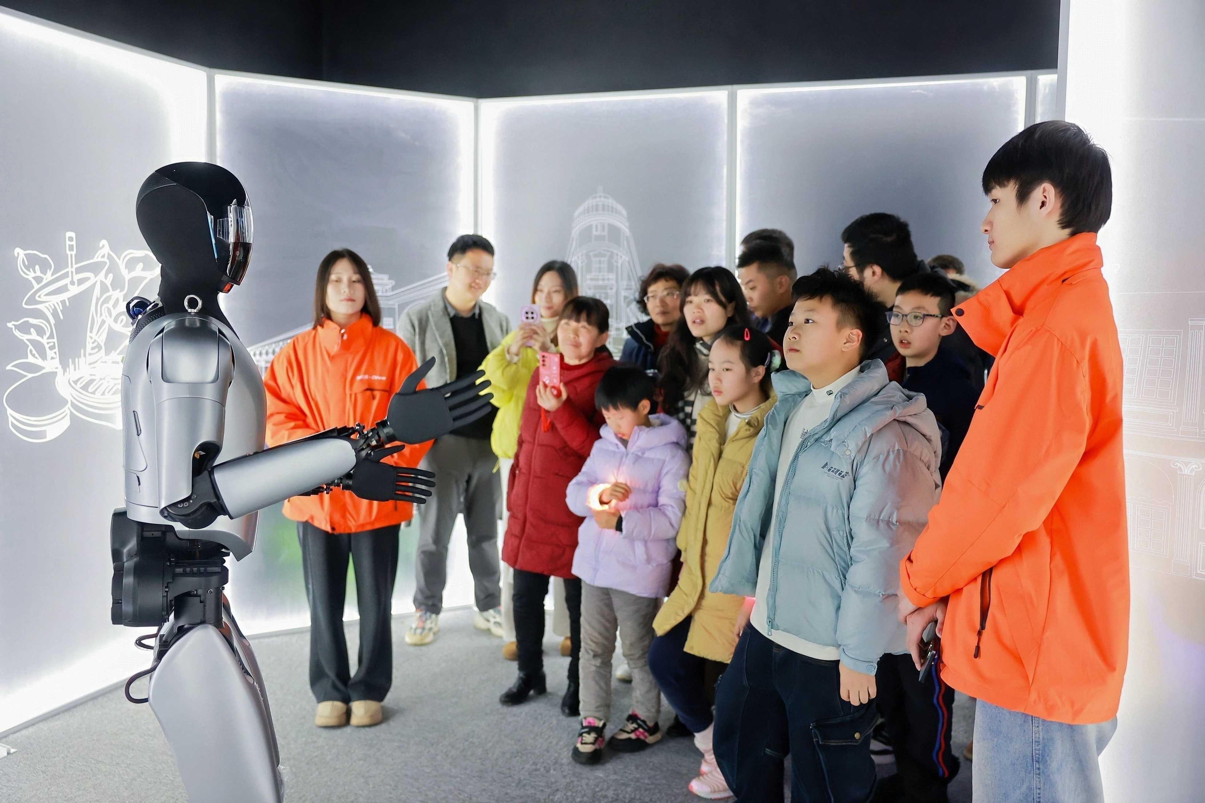 人形机器人为游客讲解知识。