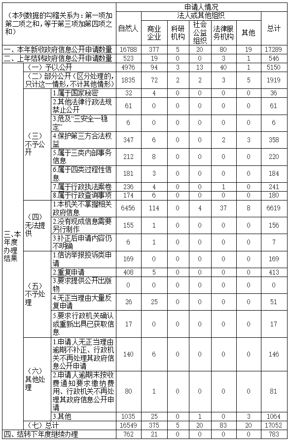 三、收到和处理政府信息公开申请情况