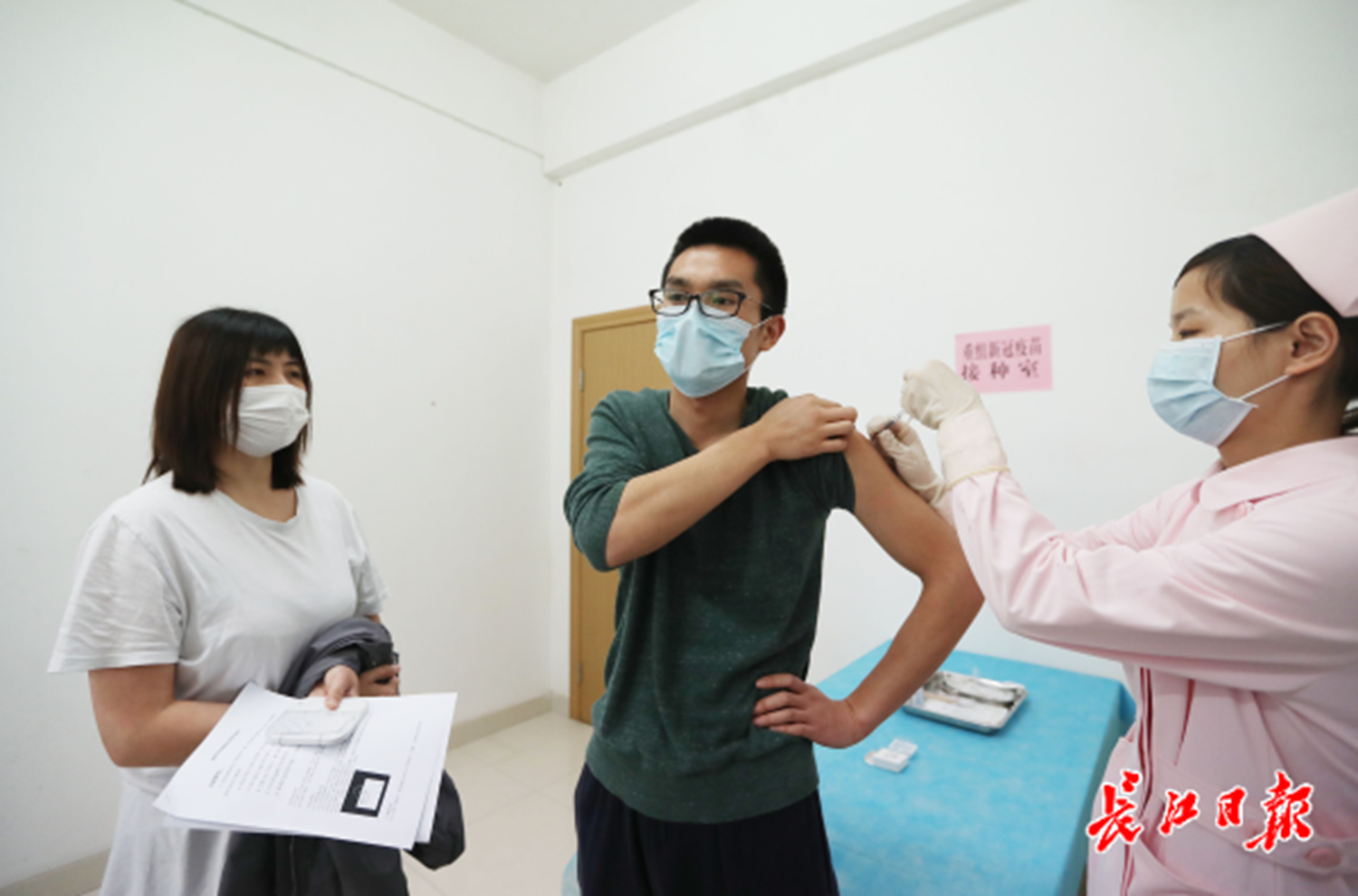 张晶和赵威夫妇在接种新冠疫苗。图左一为张晶,左二为赵威。