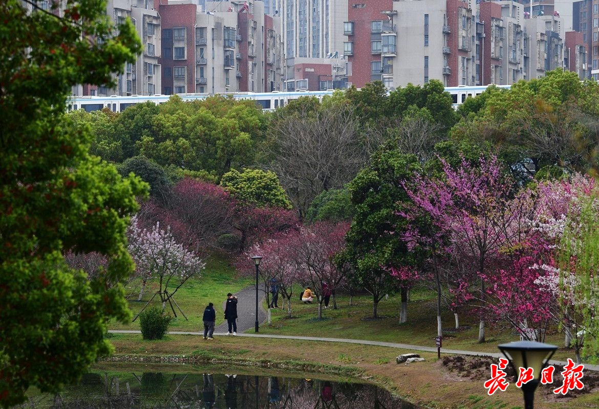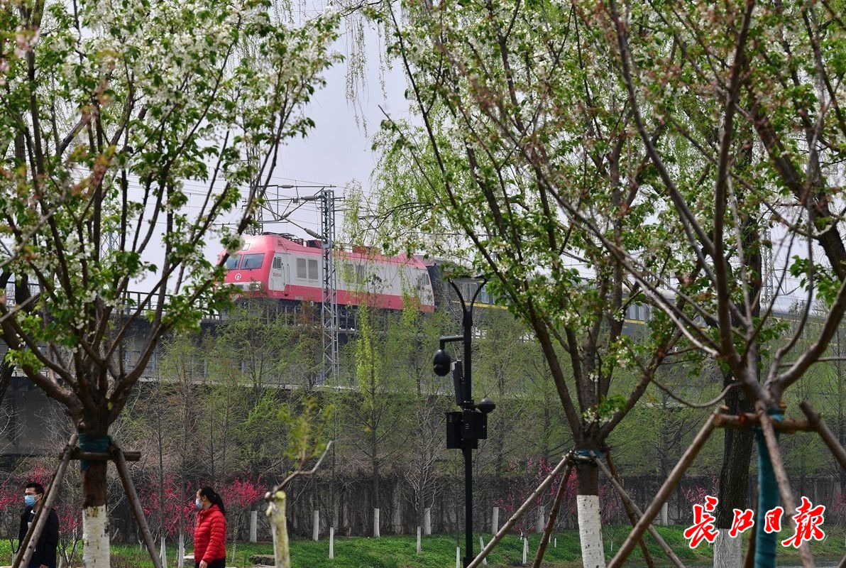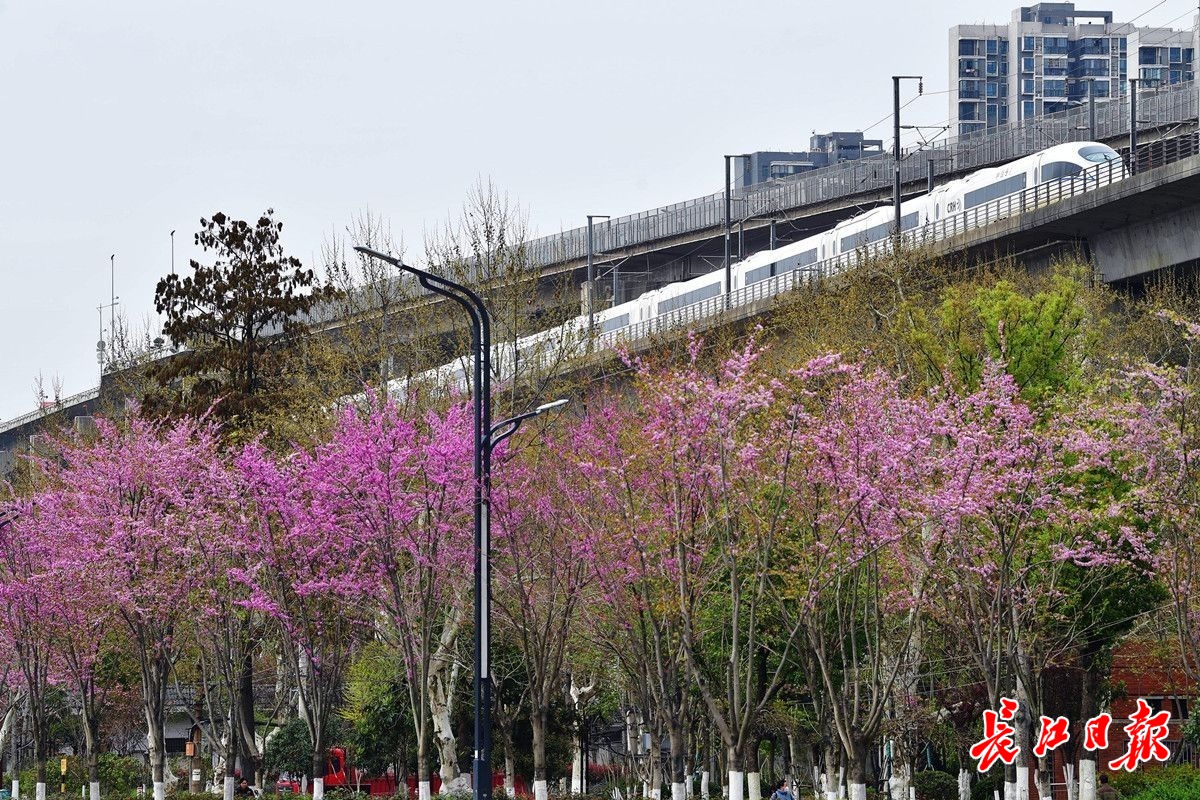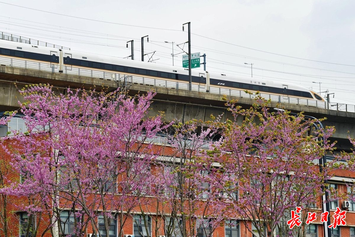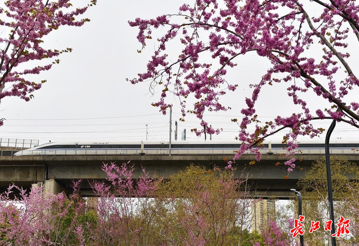 连续多日天气阴晴不定、冷暖不均,街头和公园竞相绽放的樱花、桃花、紫荆、海棠却似乎要让时下的武汉暂停在无限春光里。穿行在城市中的高铁、火车和地铁列车从一树树、一丛丛如云似锦、姹紫嫣红的繁花旁驶过,向花开,往春来。钢铁长龙与娇艳芳菲相得益彰,共同为城市注入前进的蓬勃活力。