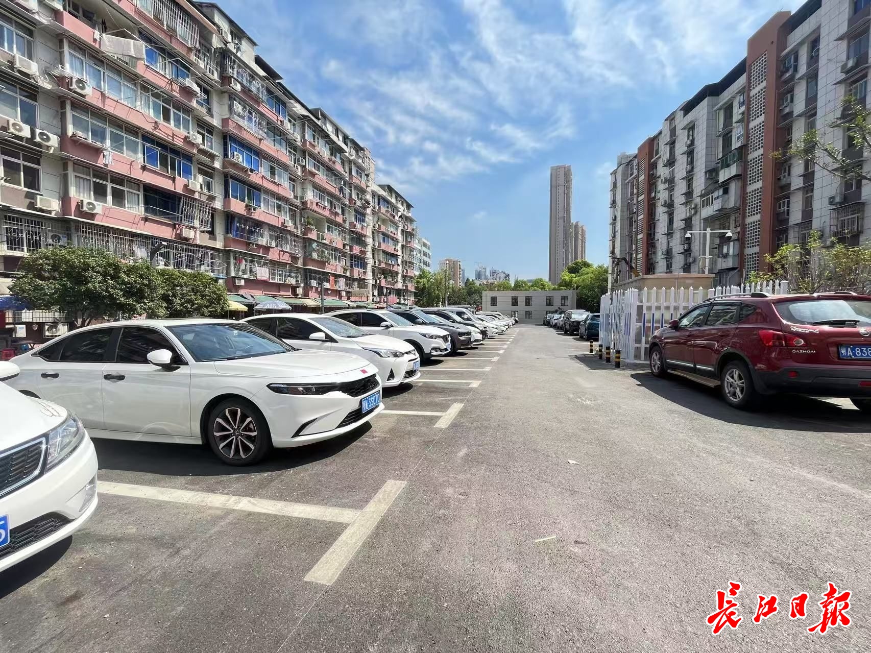 龚文春自荐带长江日报记者参观改造后的小区。从崭新大门走进去,左手边是一个小型停车场和口袋公园。“这是我们看着一点点建好的。”龚文春说,以前这里有一排门面,环境差、路面脏,停车也不方便。现在居民回家在这个停车场停完车,走两步就能到家,旁边的口袋公园人气也旺,不少居民聚在这里聊天,出门买菜走累了还能过来休息一下。
