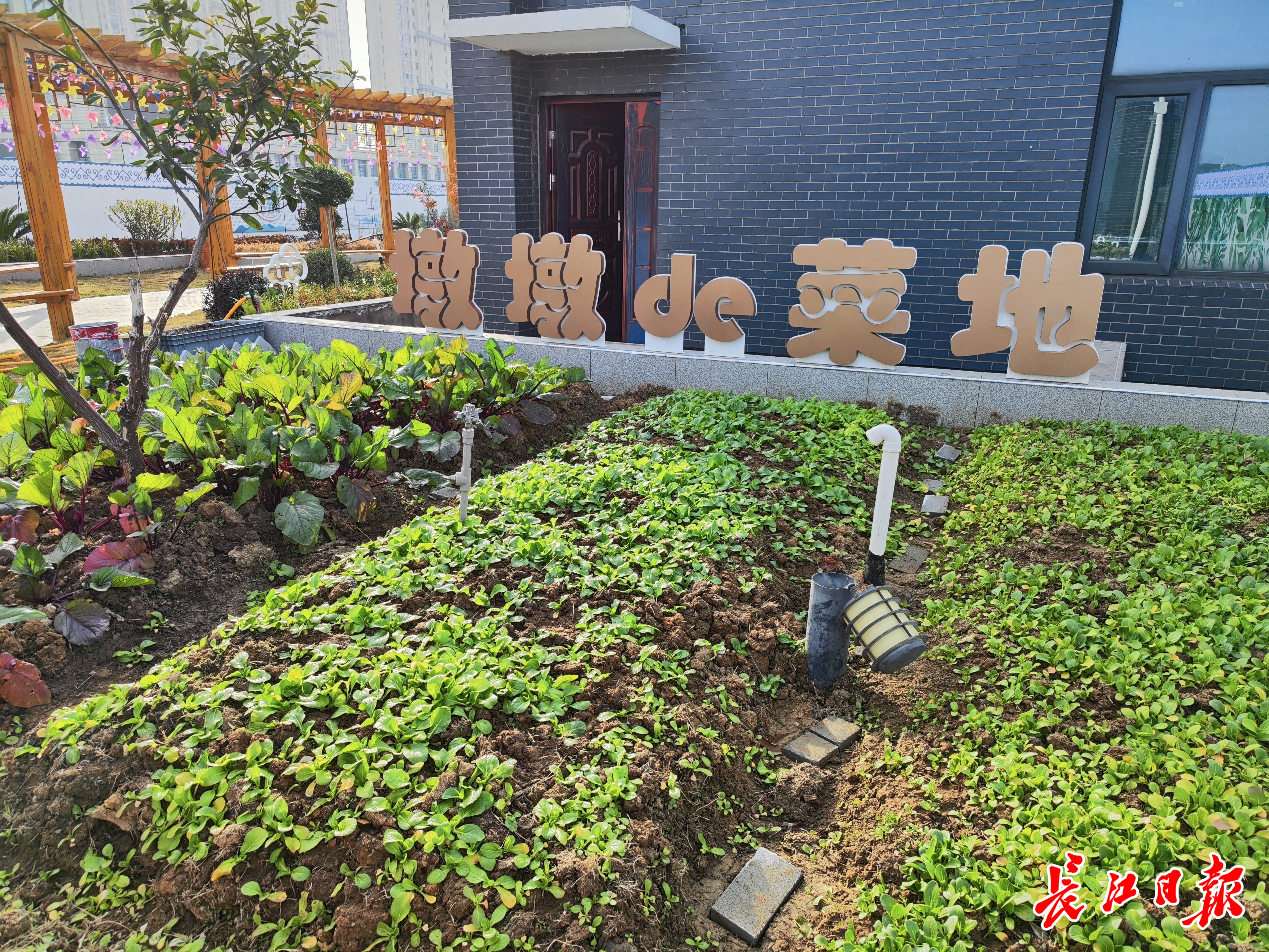 顺着高荣秩的脚步,长江日报记者看到一簇茶梅开得正艳,冬青向阳而生,粒粒红果饱满圆润,十分可人。微风轻拂,装饰连廊的彩色风车悠悠地转,菜地、花圃、板报等分设两侧,错落有致,属于孩子们的“秘密花园”多彩而温馨。高荣秩高兴地对记者讲起了花园的由来。
