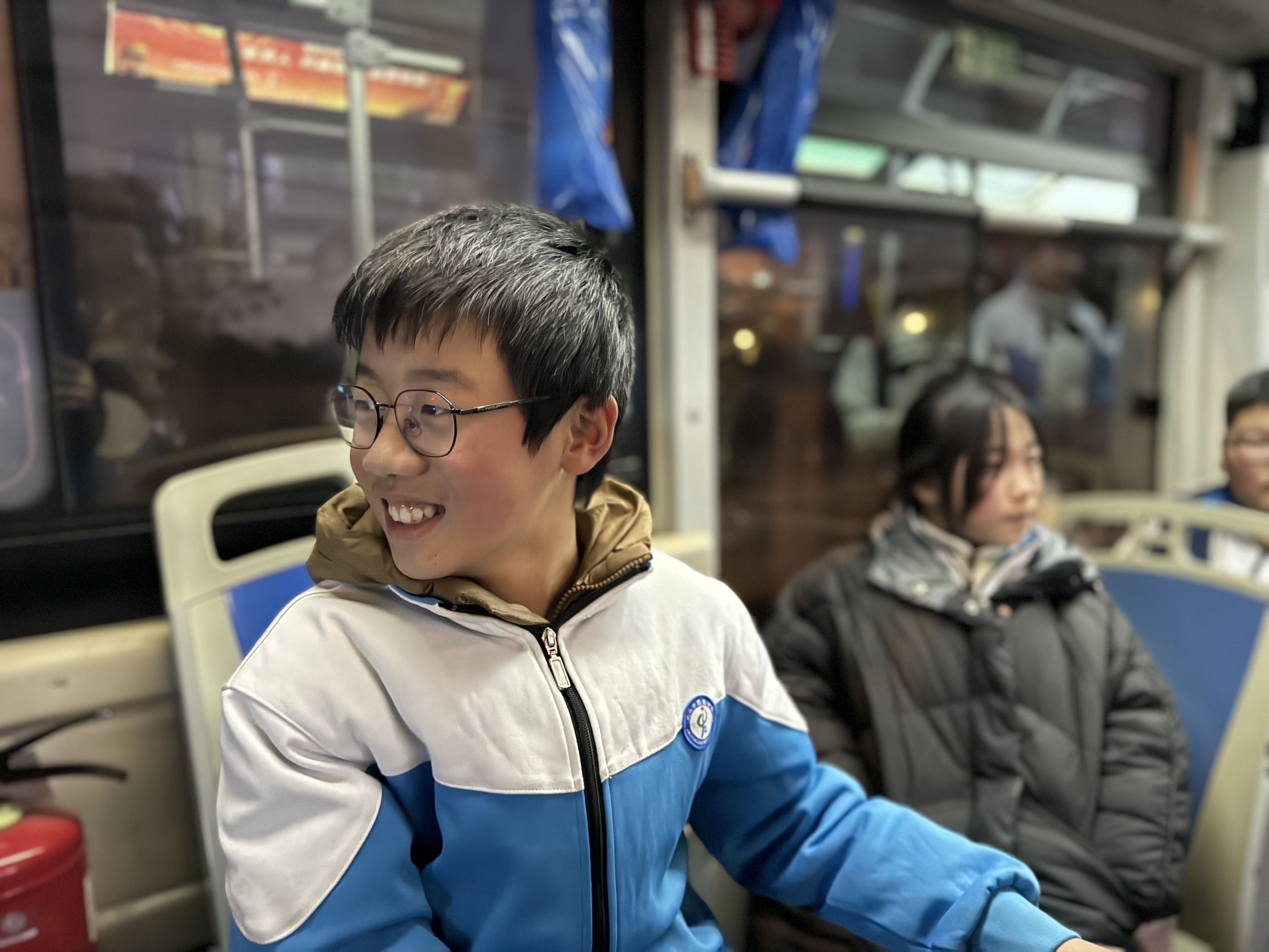 项顺坤在慈惠中学读初一,他家距离学校约17公里,桂小红如果骑电动车送儿子上学,需要近1个小时。“今年开学,我们得知开通了一条通学定制公交,马上报名。”桂小红说,现在冬天,骑1个小时电动车太冷了。坐公交上学,孩子早上可以多睡半个小时。