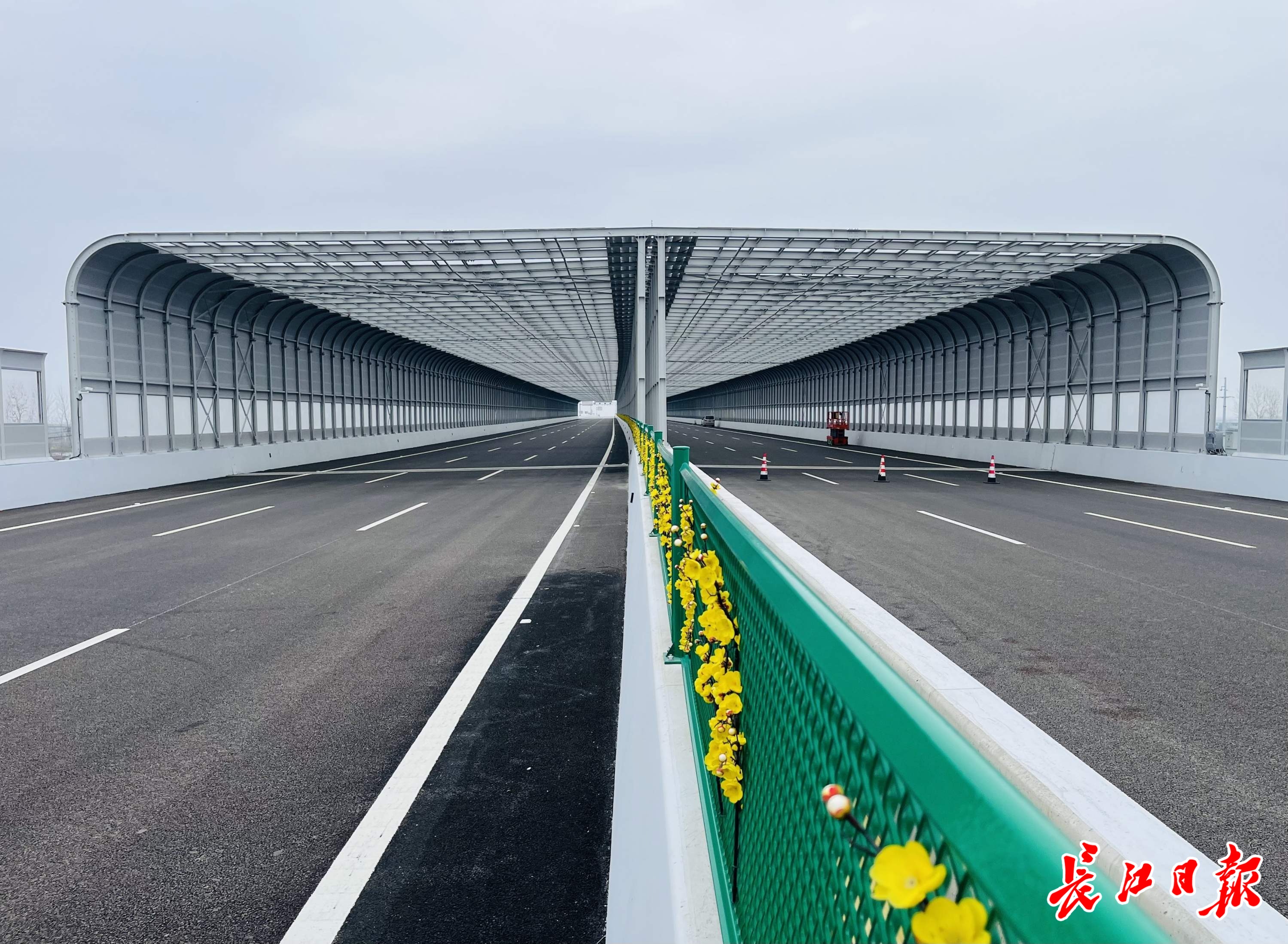 记者驱车行驶至靠近涨渡湖湿地段时,只见大桥主动“画了一道弧线”,为生态“让路”1公里。400米长的全封闭声屏障采用特殊透光材料,将交通噪声降至日常交谈水平,为候鸟打造“静音家园”。湖北交投双柳桥公司副总经理黄颖杰说:“为不打扰涨渡湖湿地鸟类,我们专门修建了全封闭声屏障,这在万里长江桥梁建设中尚属首次。”
