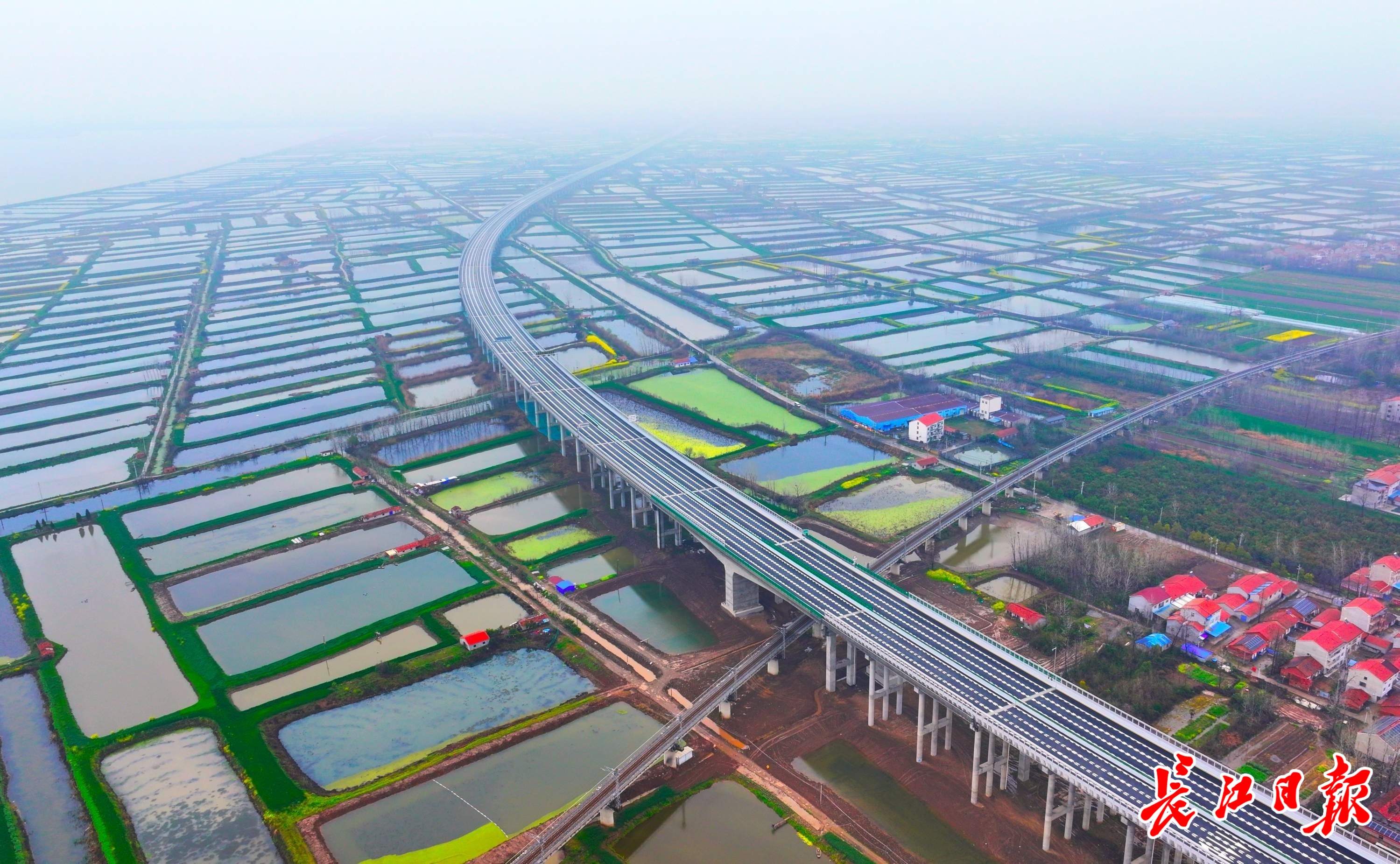 2026年3月18日,双柳长江大桥引桥横跨涨渡湖。