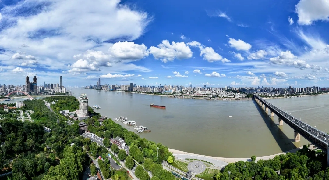 蓝天白云,极目楚天舒,武汉两江四岸,大气磅礴。