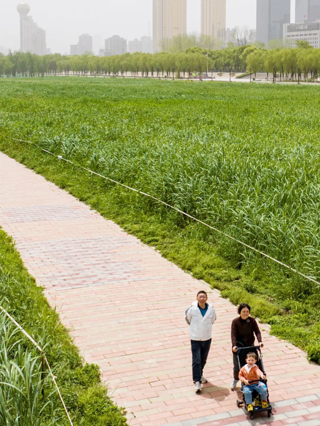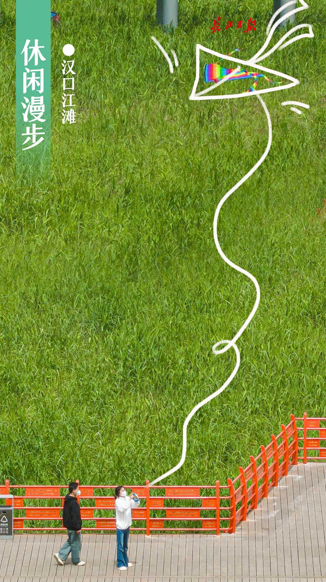市民在汉口江滩休闲散步。