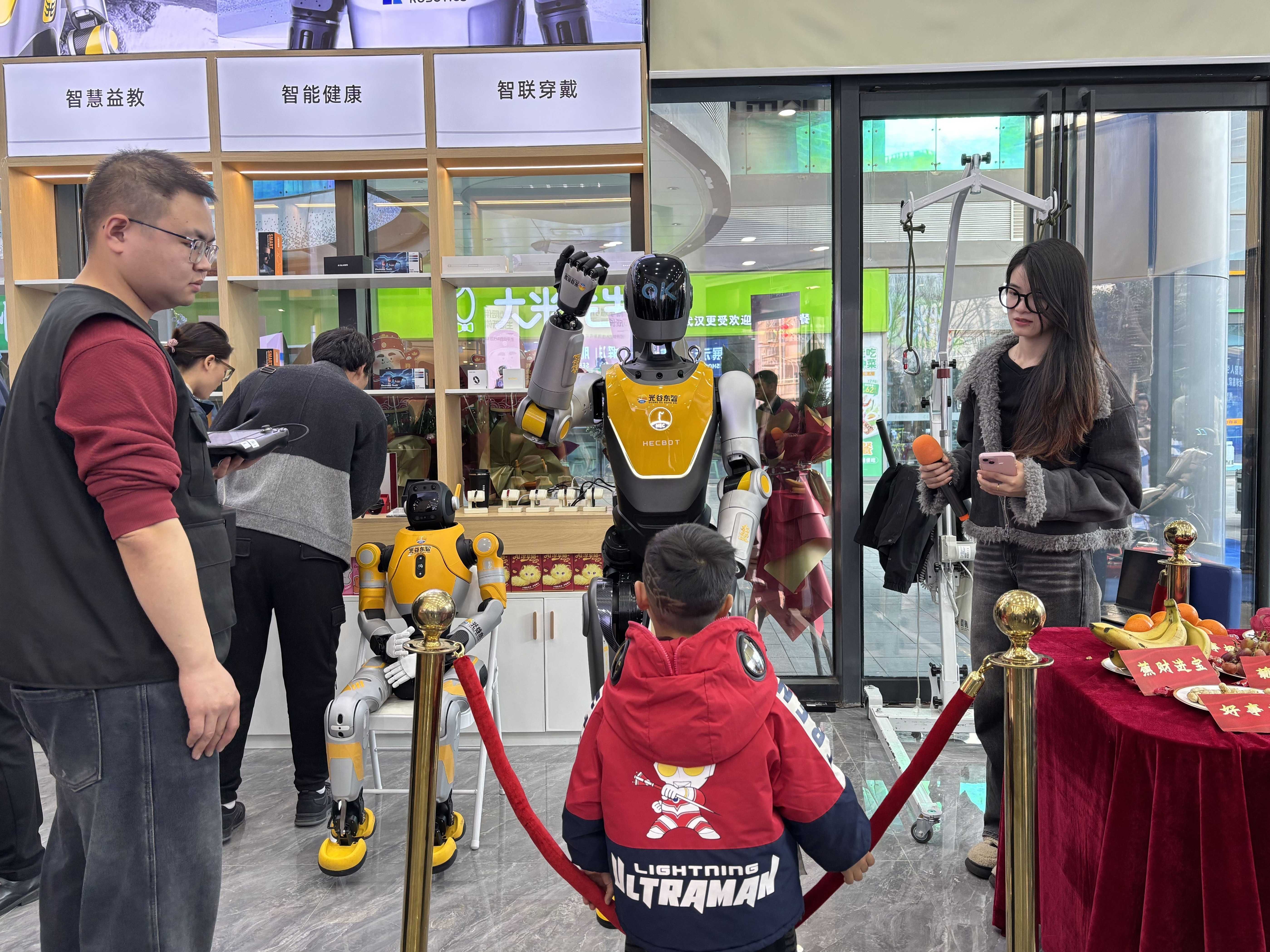 记者看到,门店500平方米的空间内,一楼覆盖智联穿戴、智能健康、智慧益教、智感玩偶、智控机能、智享创玩等12个应用场景,摆放着优必选、宇树、科大讯飞等热门品牌的人工智能产品,价格从298元的无人机足球到数十万元的人形机器人不等,满足不同层次消费者需求。二楼同样面向市民开放,提供3D打印体验、智能体训练及小型桌面机器人操作等互动项目。