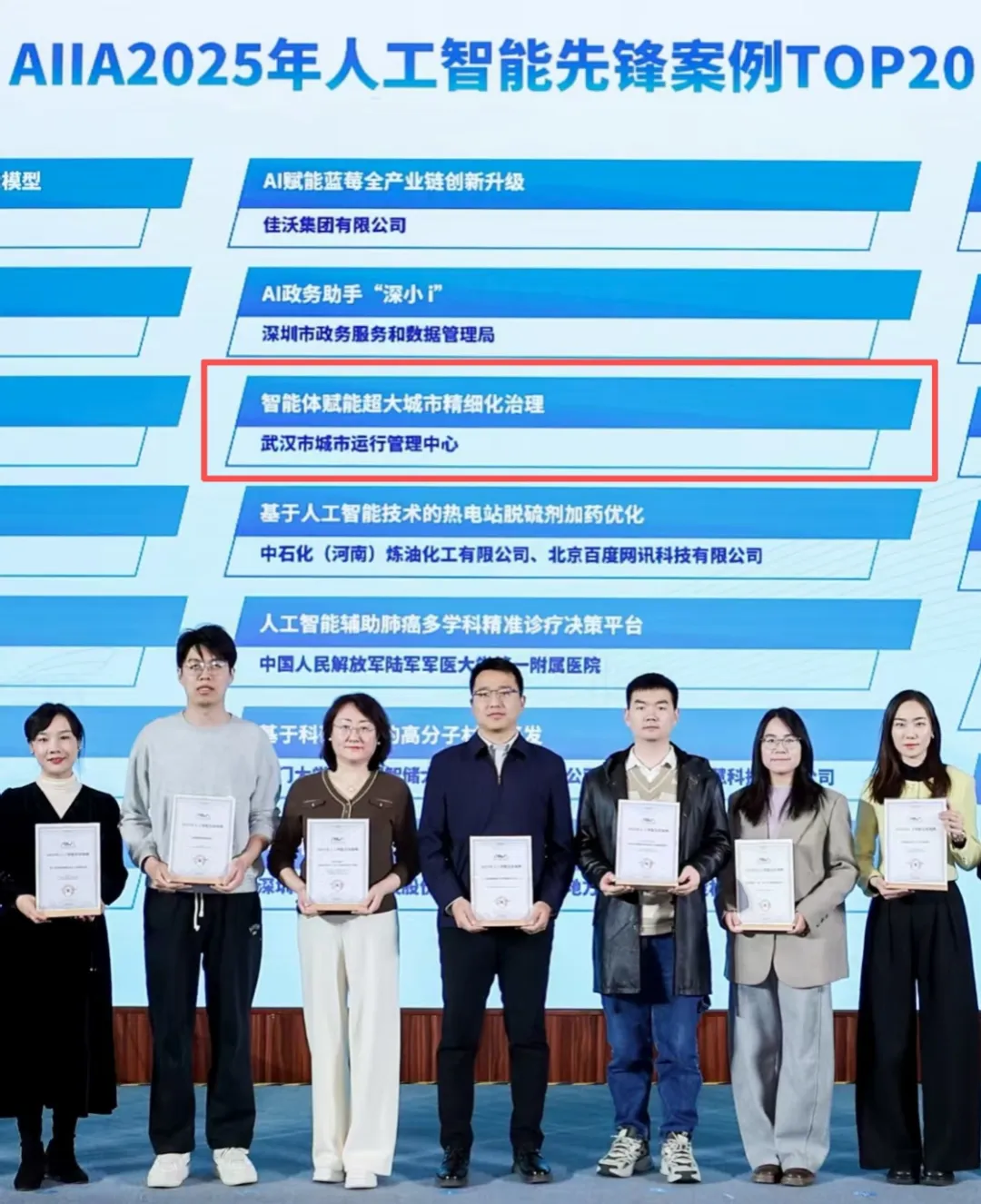 2月3日,作为国内最权威的人工智能生态合作平台,中国人工智能产业发展联盟重磅发布“2025年人工智能先锋案例Top20”。武汉市城市运行管理中心《智能体赋能超大城市精细化治理》从507个案例中脱颖而出,成为全国城市治理领域唯一入选案例(政务领域仅武汉、深圳2个城市入选)。
