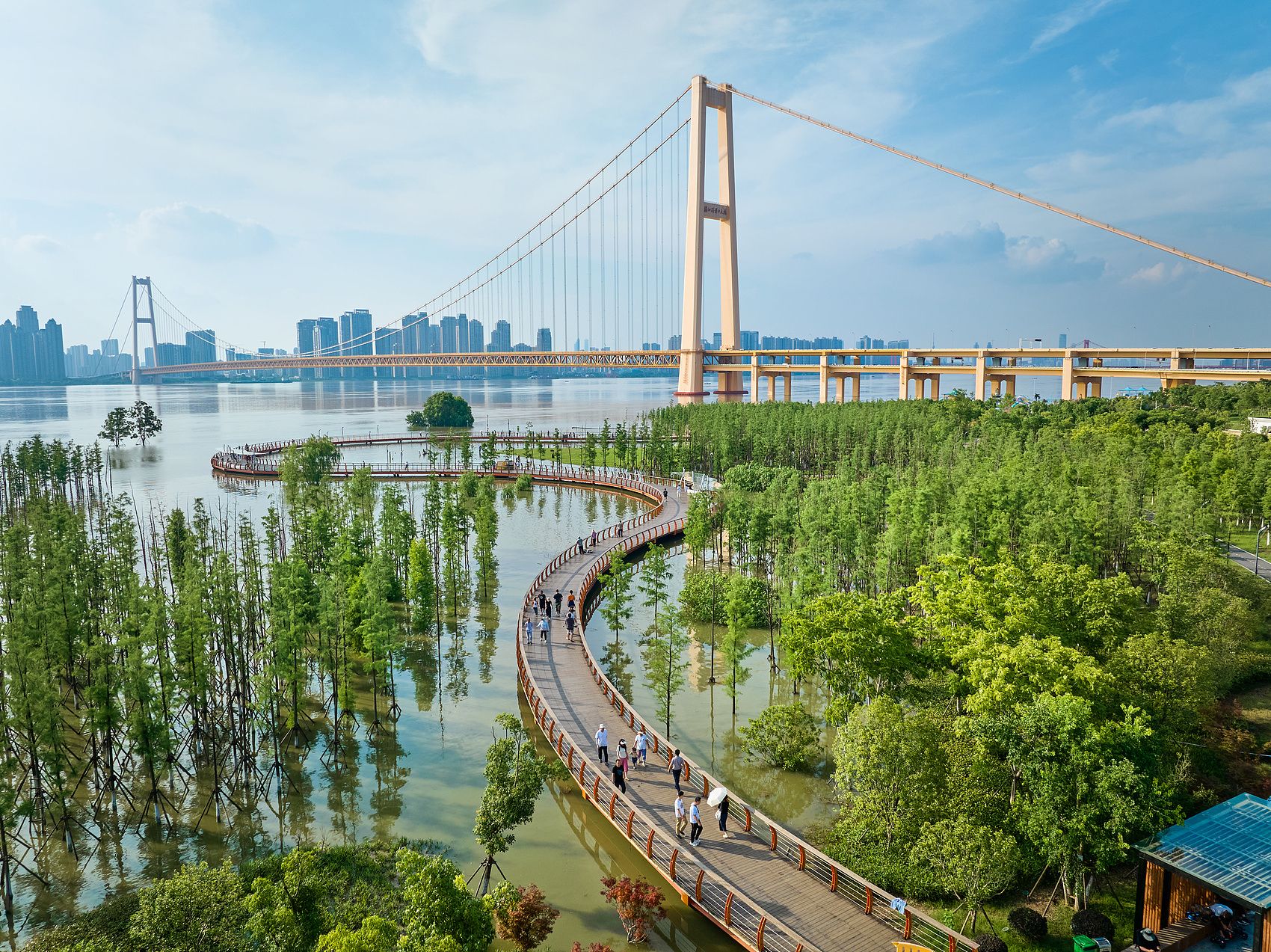 谷雨时节,长江之畔的城区在晨曦中苏醒,荻海栈桥上,观景的游客步履轻盈,从昔日荒滩化身城市“绿洲”,百万市民亲水而居。14座湖泊星罗棋布、碧波荡漾,最美高校落日洒落南湖碧波,喻家山、狮子山、桂子山等多个山体遥遥相望,湖山映照青春身影,与最美月季花路相遇,勾勒出洪山独有的诗情画意。