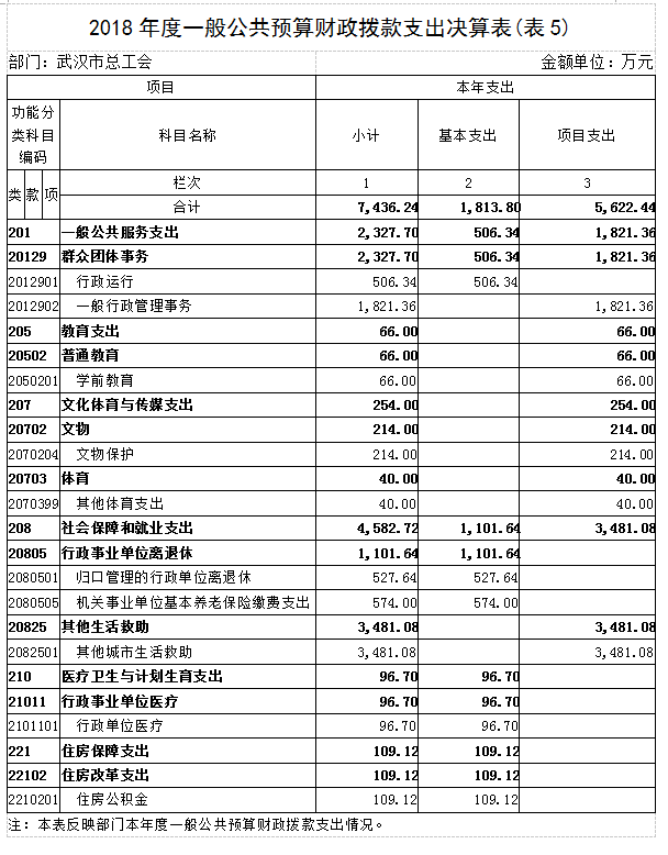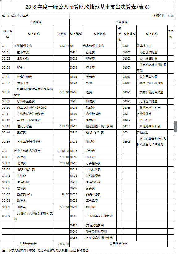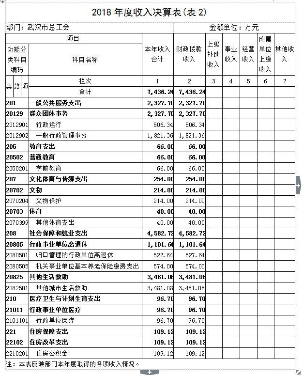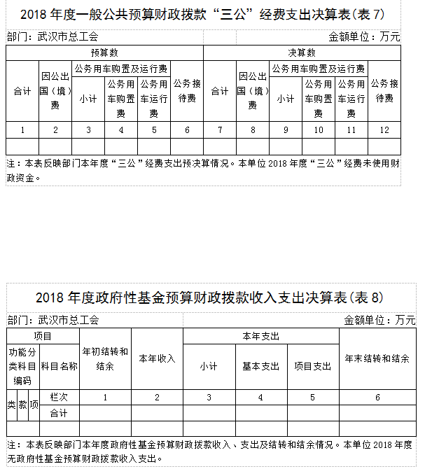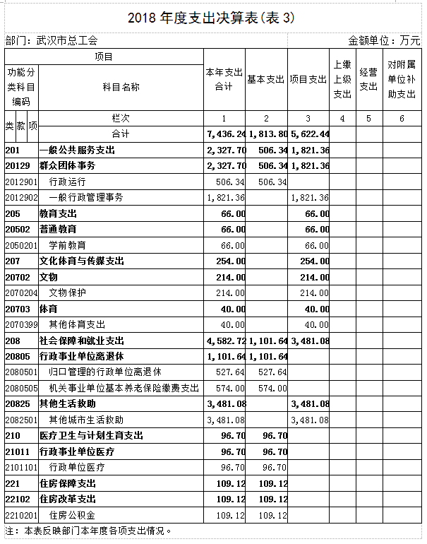 2018年度武汉市总工会部门决算