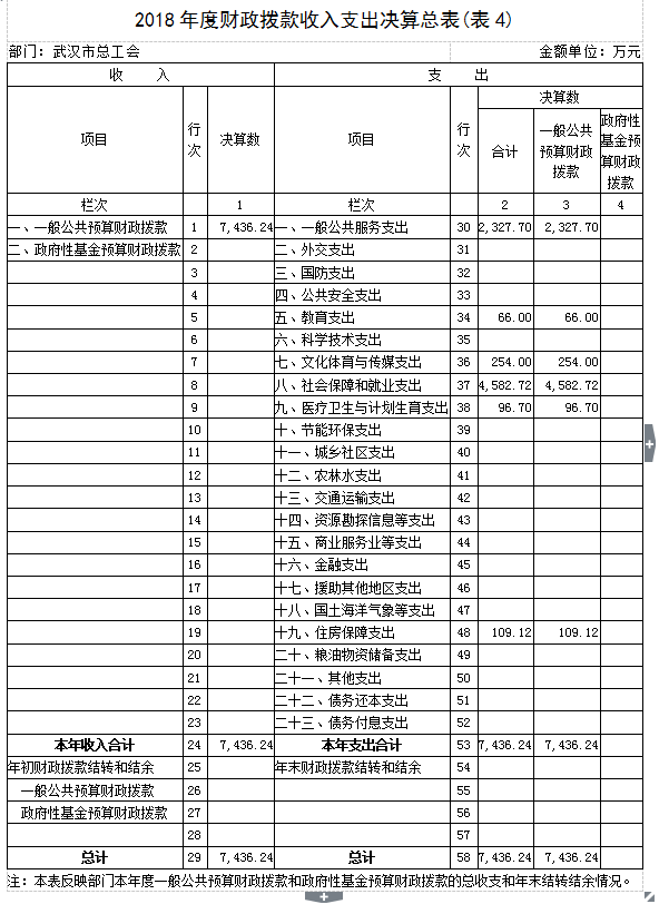 四、财政拨款收入支出决算总表(表4)