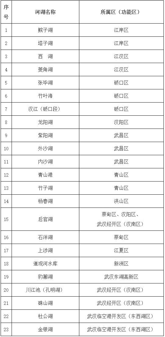 武汉市“市级幸福河湖”名录(第一批)