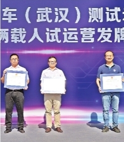武汉颁发全球首批自动驾驶车辆商用牌照 记者邓志鹏 摄
