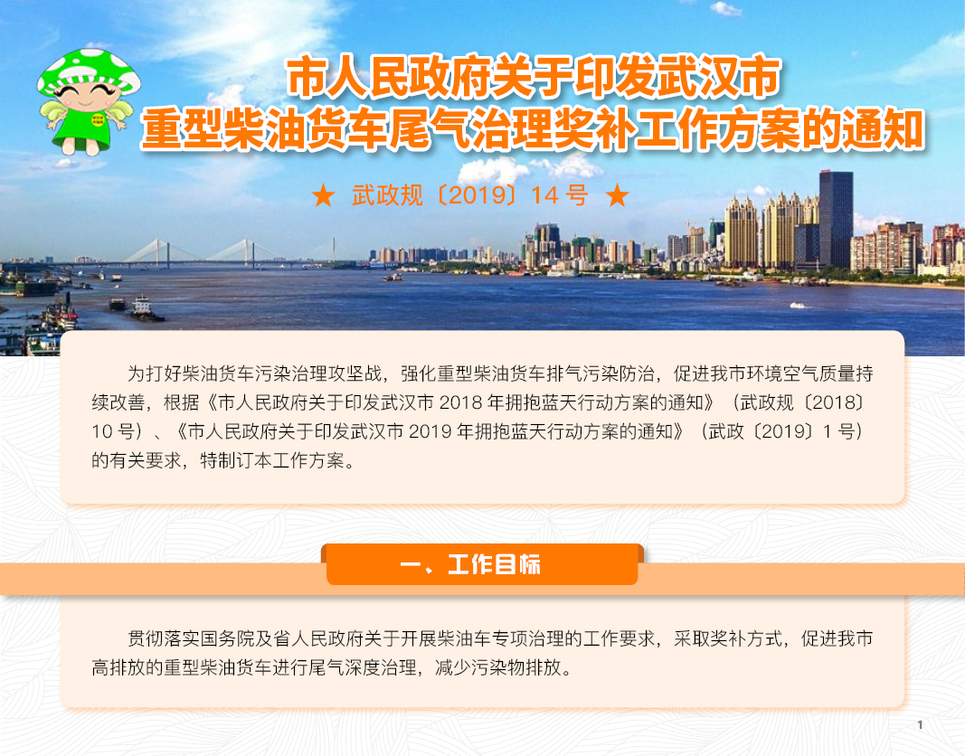 【图解】武政规〔2019〕14号 市人民政府关于印发武汉市重型柴油货车尾气治理奖补工作方案的通知