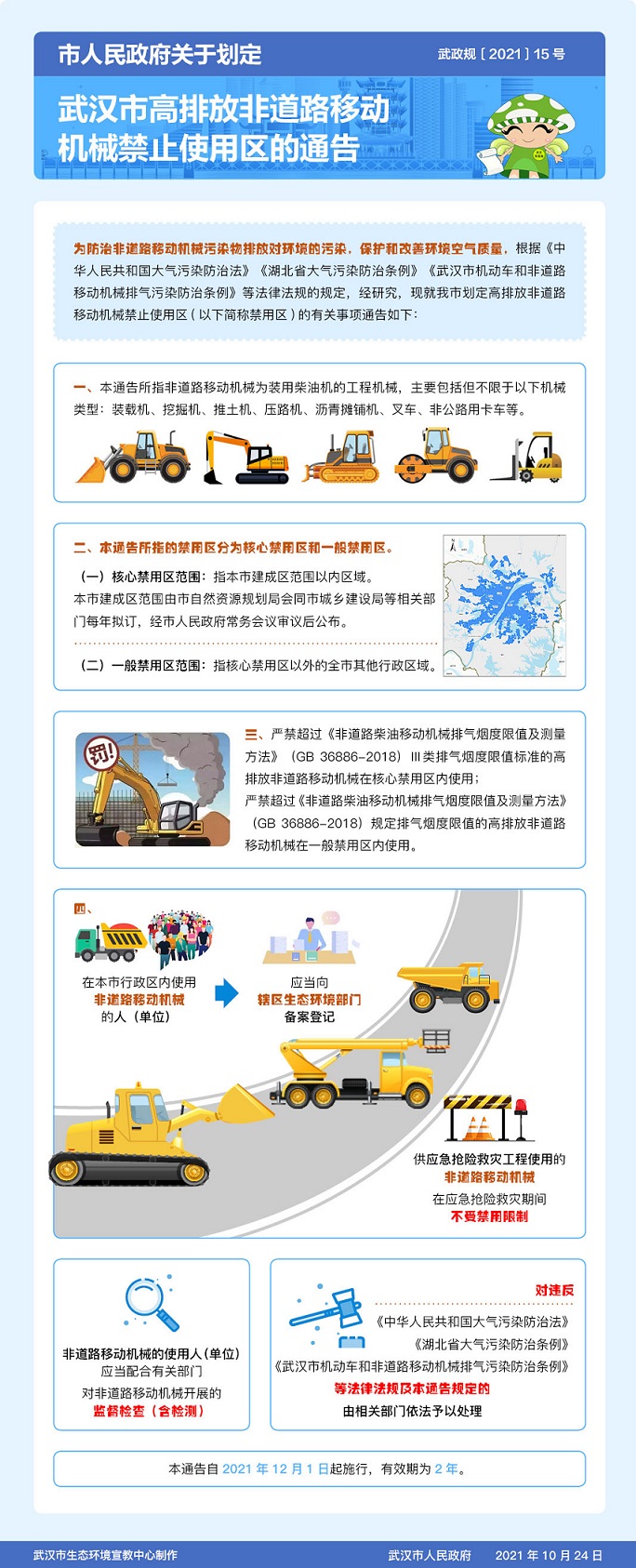【图解】《武汉市高排放非道路移动机械禁止使用区的通告》解读