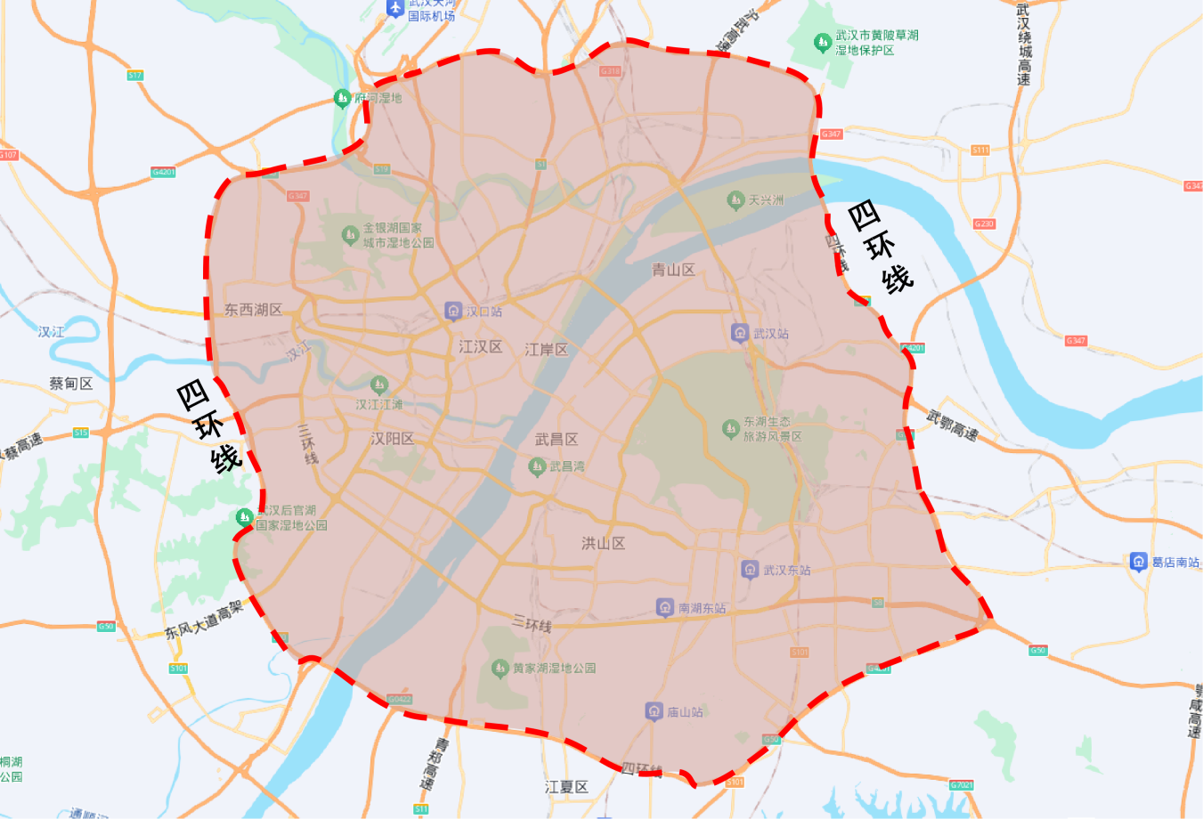 《通告》主要是按照《三年行动方案》的要求,将国三及以下排放标准的柴油货车限行区域划定为四环线(不含)以内区域,具体范围如下: