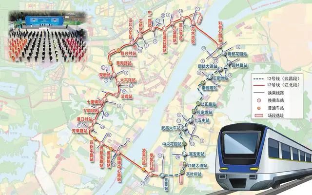 12号全线分为武昌、江北(汉口段、汉阳段)两个项目,其中,武昌段已于今年3月30日全面开工建设,预计2024年底建成通车;江北段计划2025年底开通试运营。