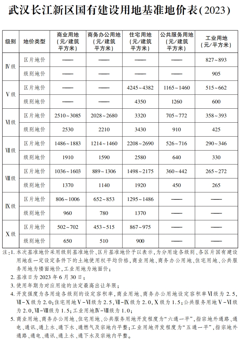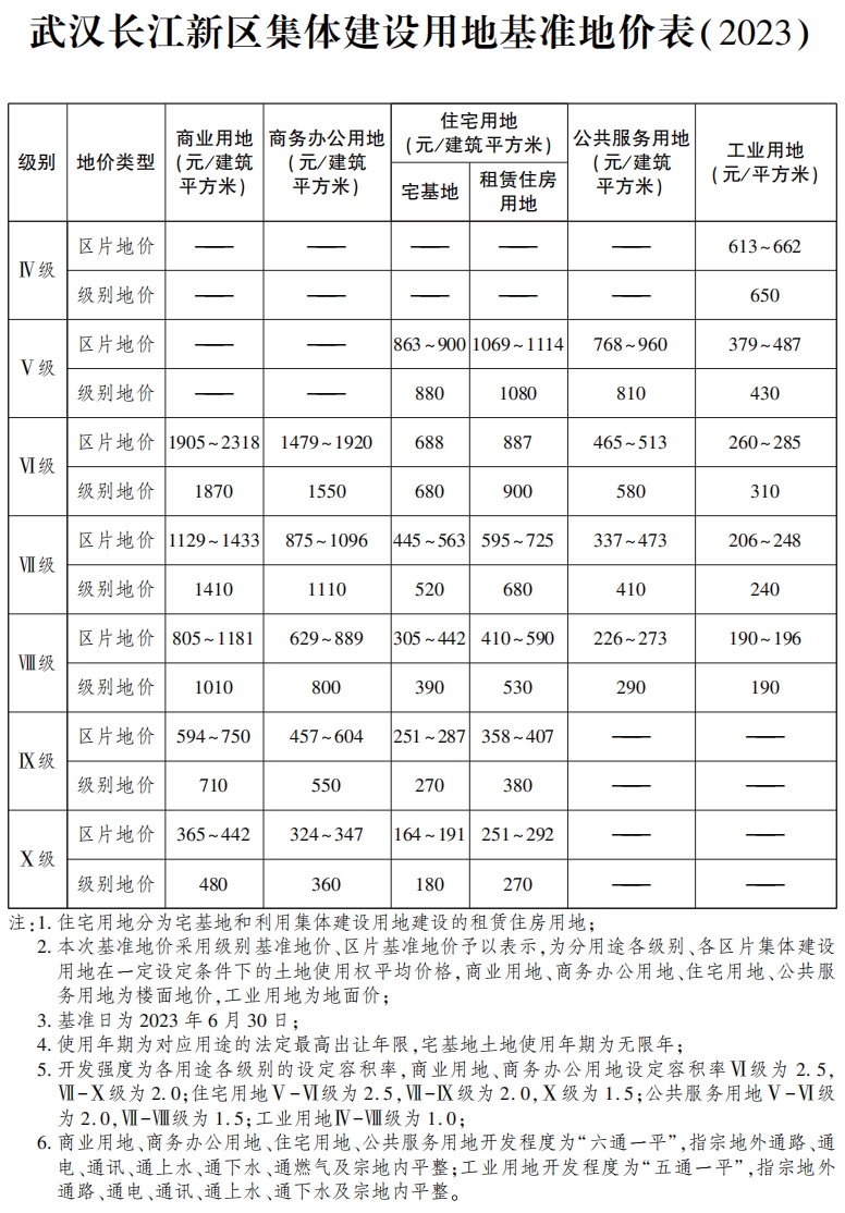 三、本通知公布的上述基准地价标准自2024年10月16日起执行。《武汉长江新区城乡建设用地基准地价图(2023)》由长江新区管委会发布。